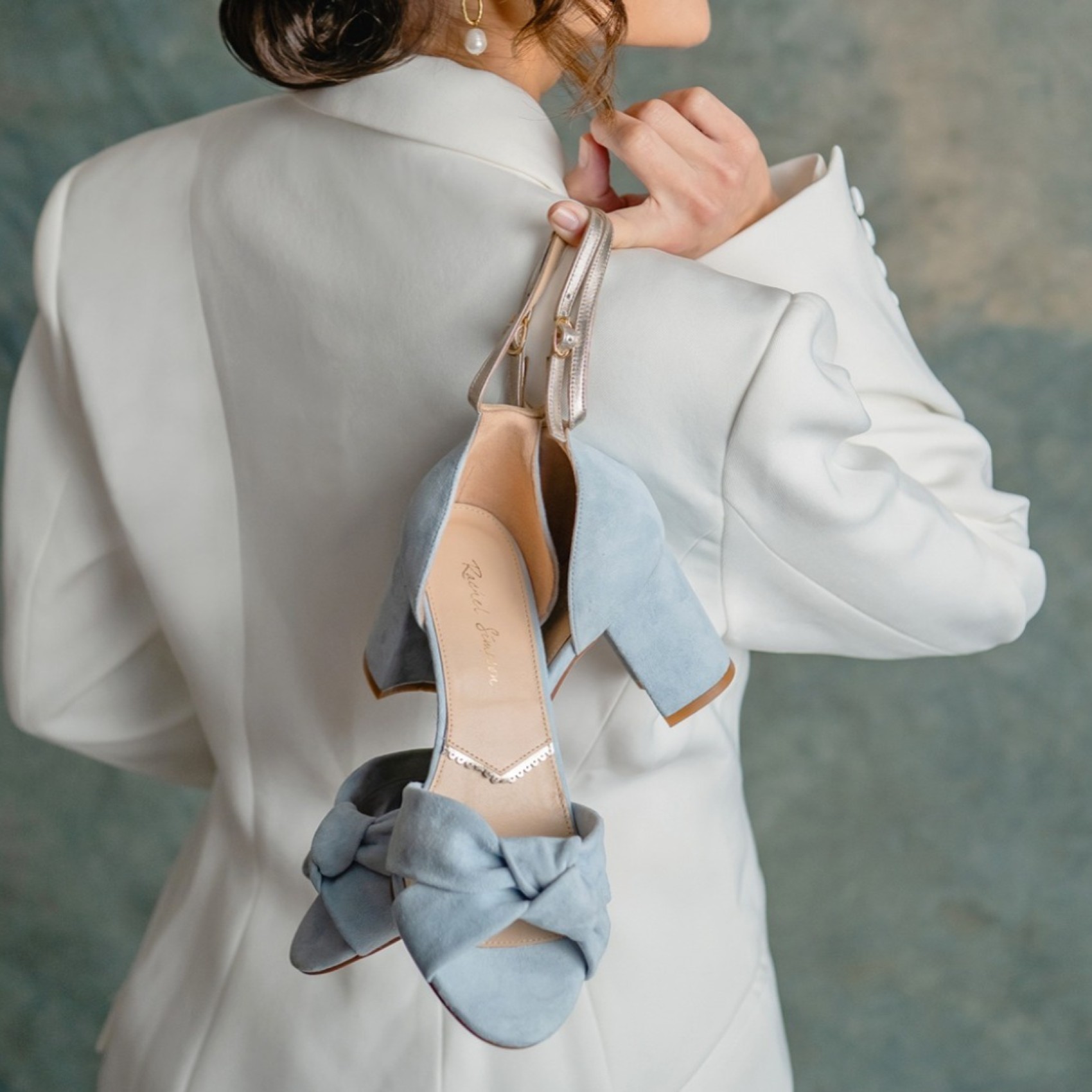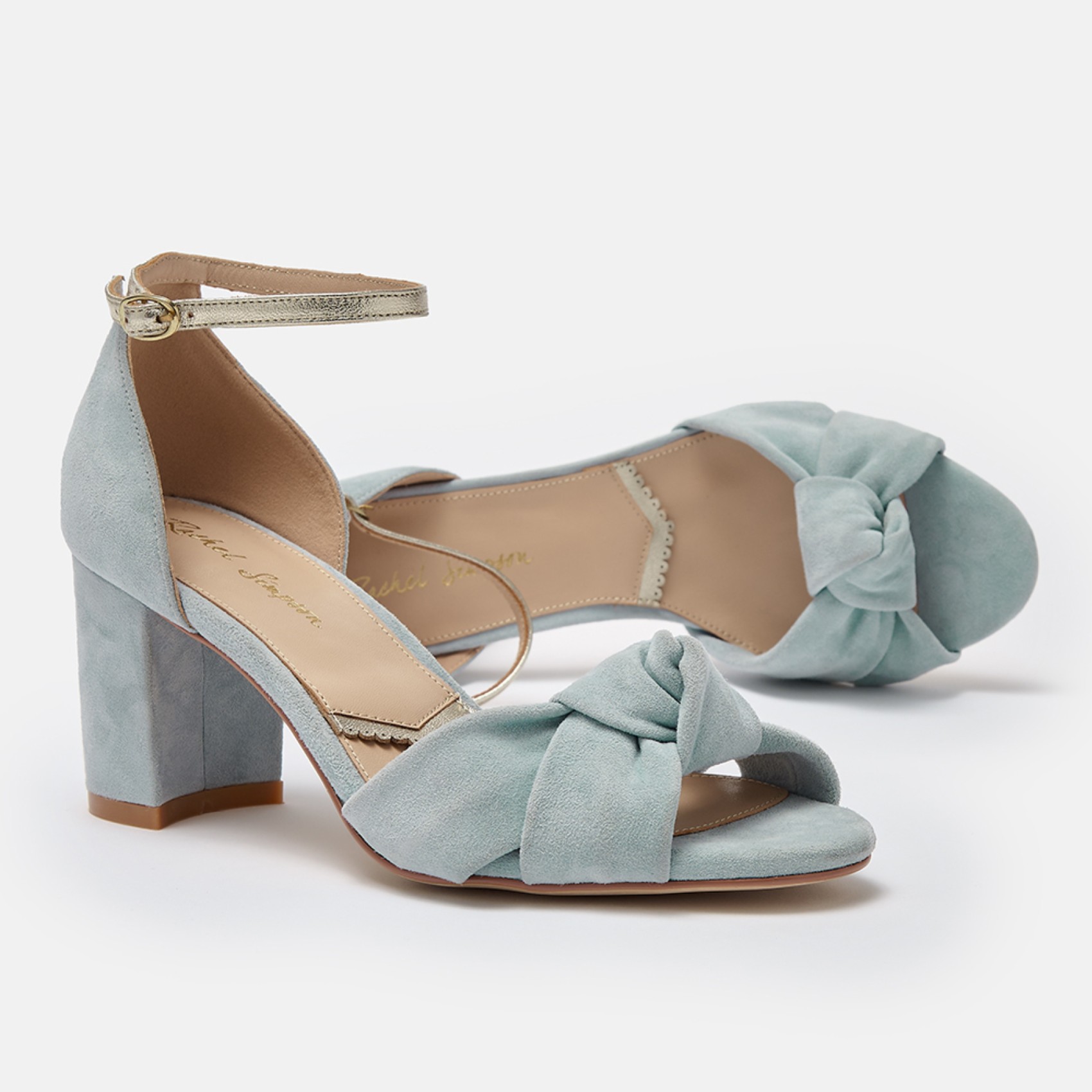 Rachel Simpson Sandales à talons carrés et nœud en daim bleu foncé Minnie | MINNIEBLU-RS