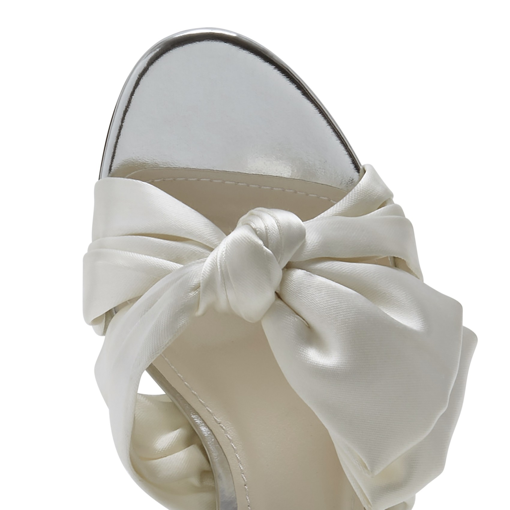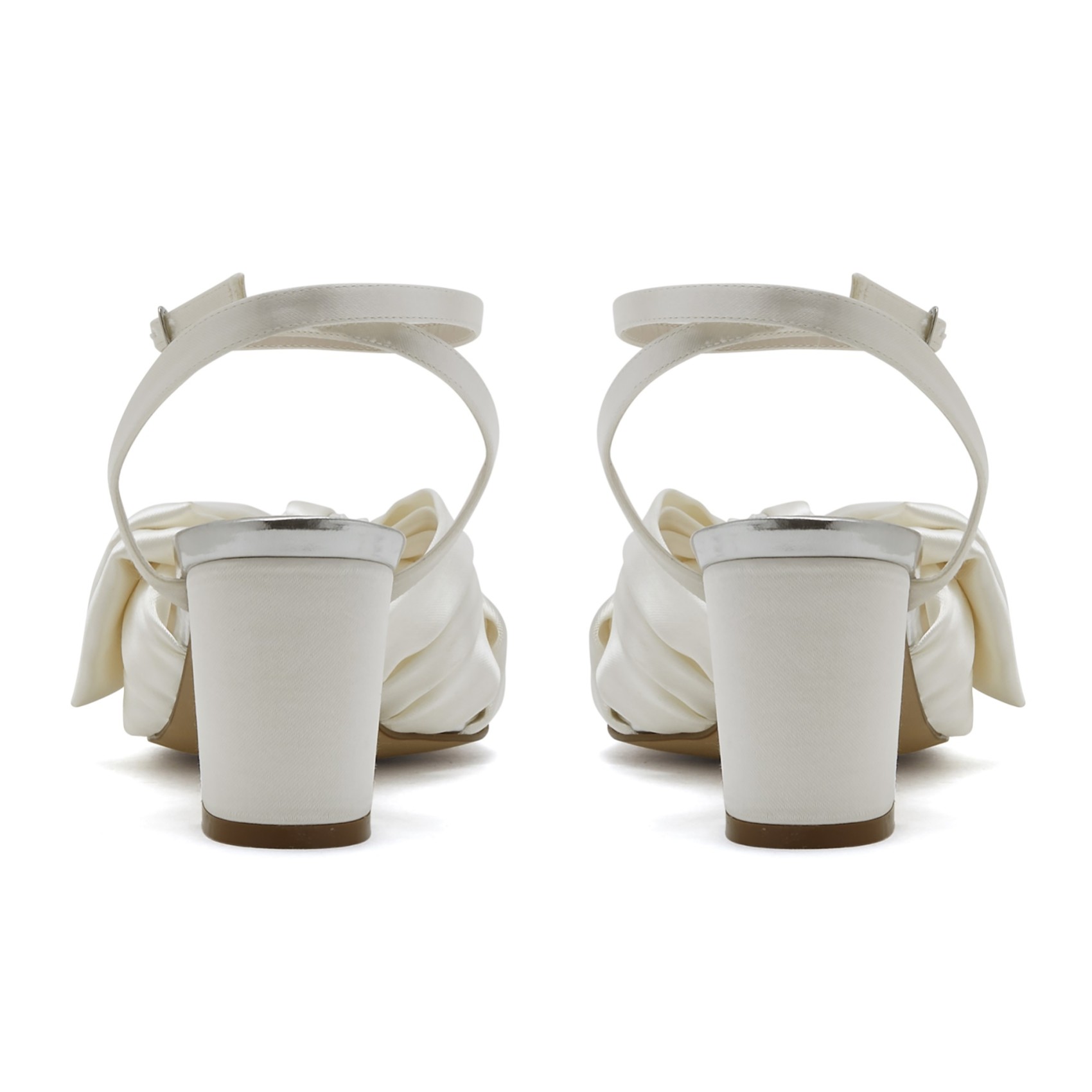 Jolies et enjouées, les sandales de mariage Arabella font partie de notre collection Fashion. Il s'agit d'une sandale de mariage à bout ouvert avec un nœud artistiquement torsadé sur le devant, une bride de cheville à boucle argentée enveloppante et un talon bloc bas et confortable. Conçue pour être portée toute la journée et pour s'amuser, cette sandale est parfaite non seulement pour les mariées, mais aussi pour les demoiselles d'honneur et les invitées de mariage.