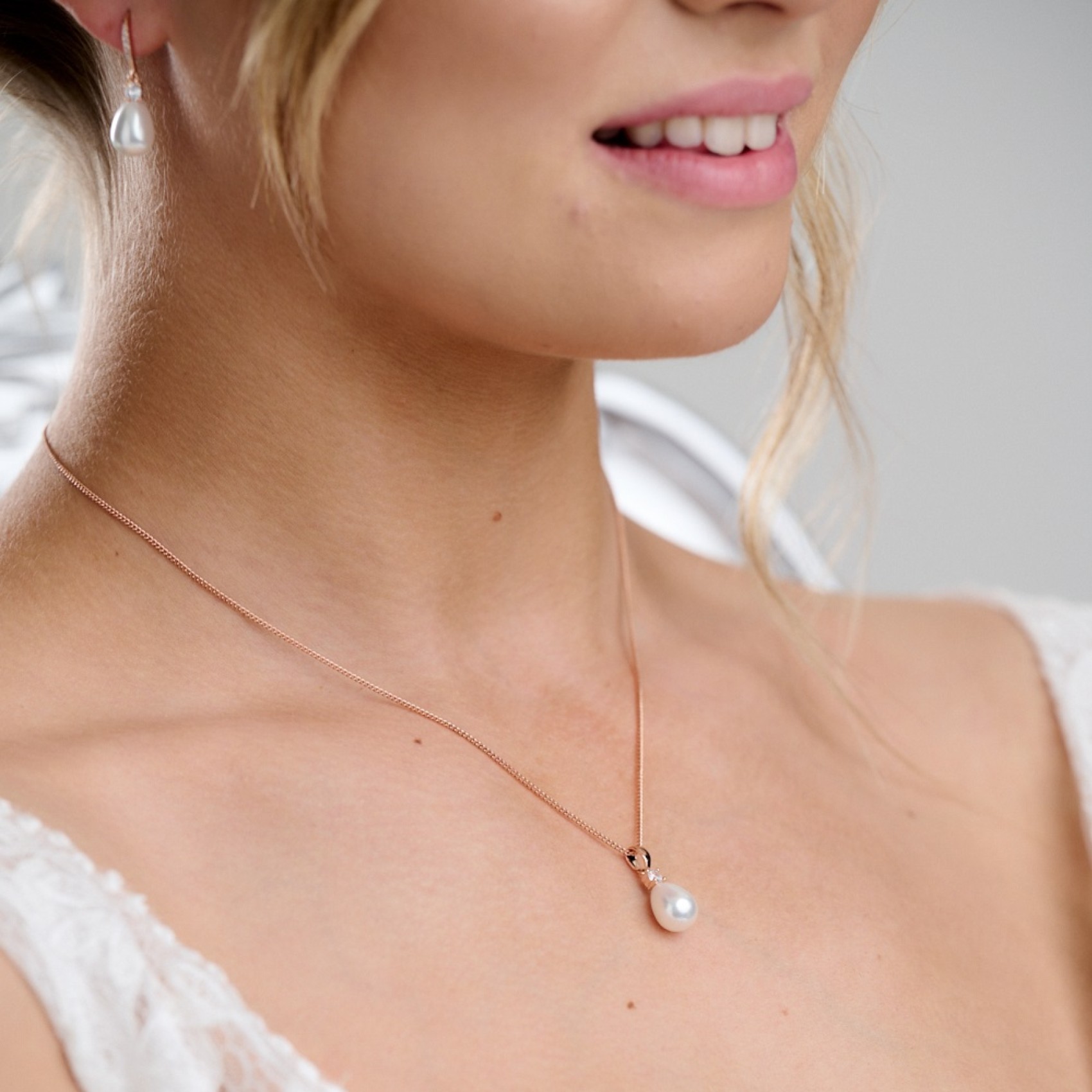 Ce collier pendentif classique en or rose est orné d'une perle larmoyante ivoire et d'un cristal solitaire scintillant. Ce collier de perles délicates est un joli choix pour les mariées et les demoiselles d'honneur.