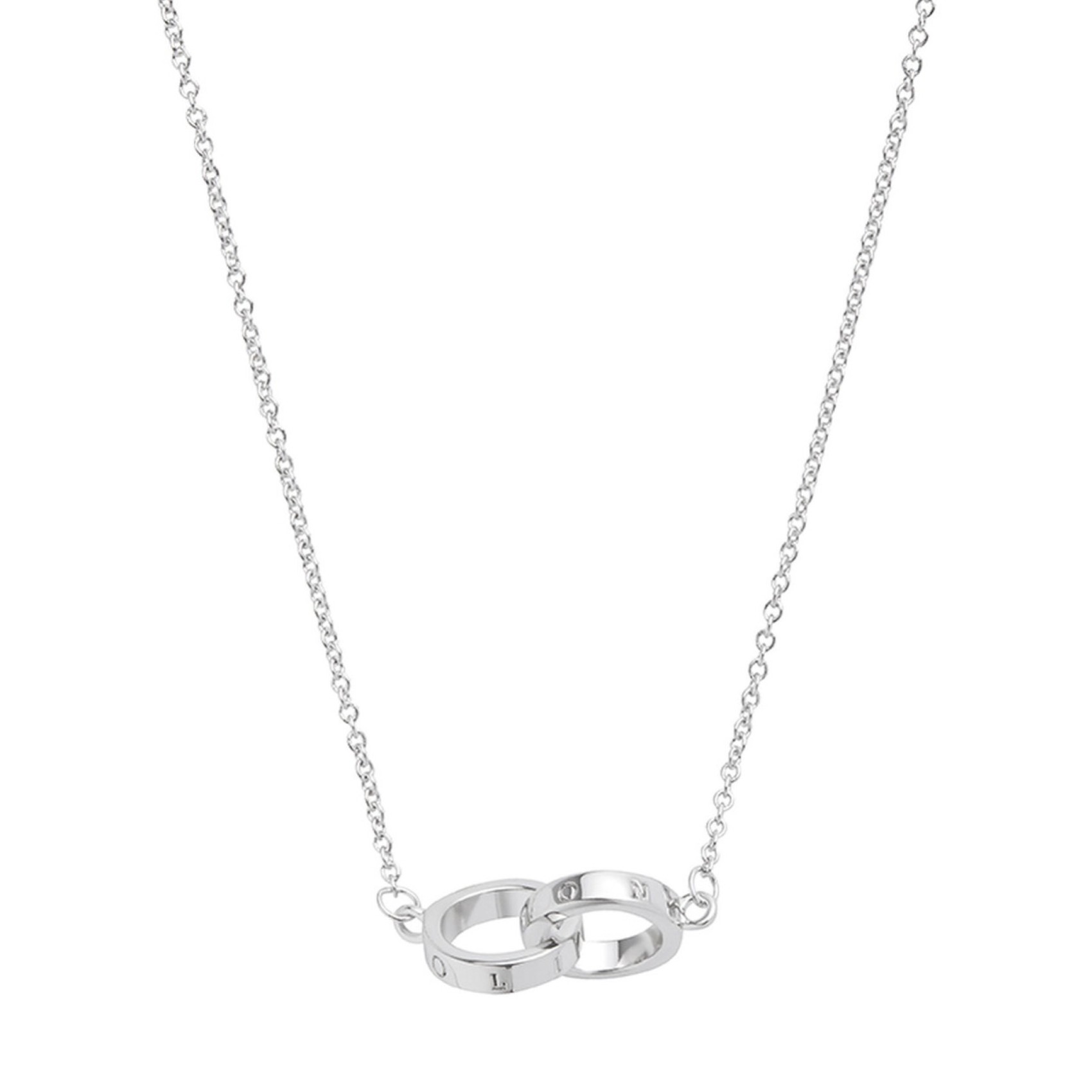 Ce délicat collier plaqué argent est composé de deux anneaux entrelacés, embossés avec la marque Olivia Burton. Vous garderez précieusement cet accessoire de tous les jours. Associez-le au bracelet Interlink assorti pour compléter votre look.