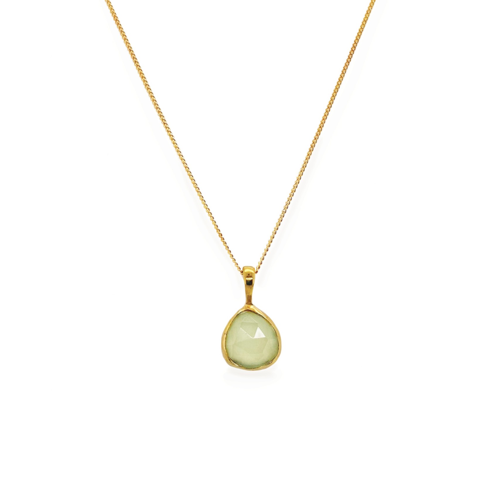 Un chic et magnifique collier pendentif fabriqué à la main en argent sterling plaqué or 14ct et orné d'une pierre semi-précieuse Prehnite de taille Tabiz, taillée avec des facettes pour faire ressortir sa beauté naturelle.