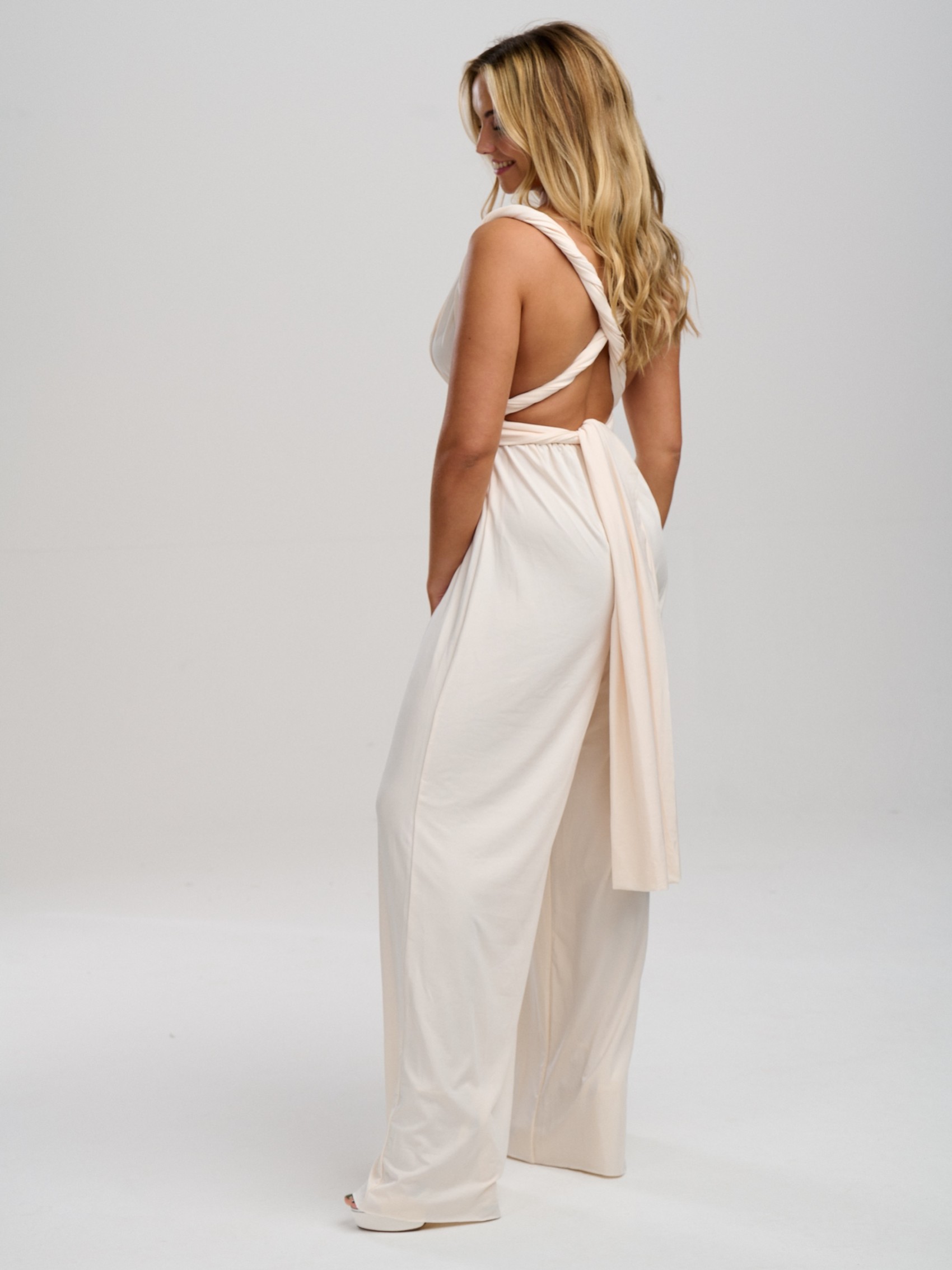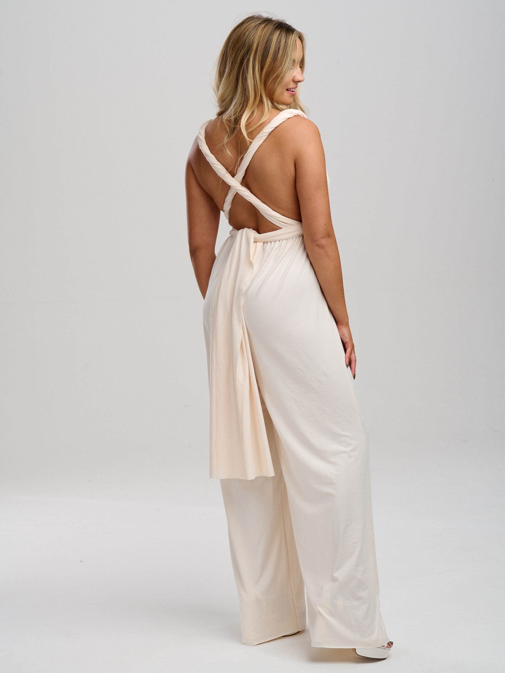 Notre luxueuse combinaison crème multi-couches en stock est la solution parfaite pour toutes vos demoiselles d'honneur. Fabriquée à la main à partir d'un tissu extensible lourd pour plus de confort, cette combinaison crème pour demoiselle d'honneur est très douce au toucher et peut être portée d'innombrables façons différentes pour convenir à toutes les tailles et à toutes les silhouettes. Les combinaisons à l'infini sont parfaites pour les demoiselles d'honneur qui ne savent pas quel style choisir (vous pouvez littéralement décider le matin du mariage !). Elles constituent également la combinaison idéale pour les demoiselles d'honneur enceintes, car la ceinture extensible peut être placée au-dessus du ventre.