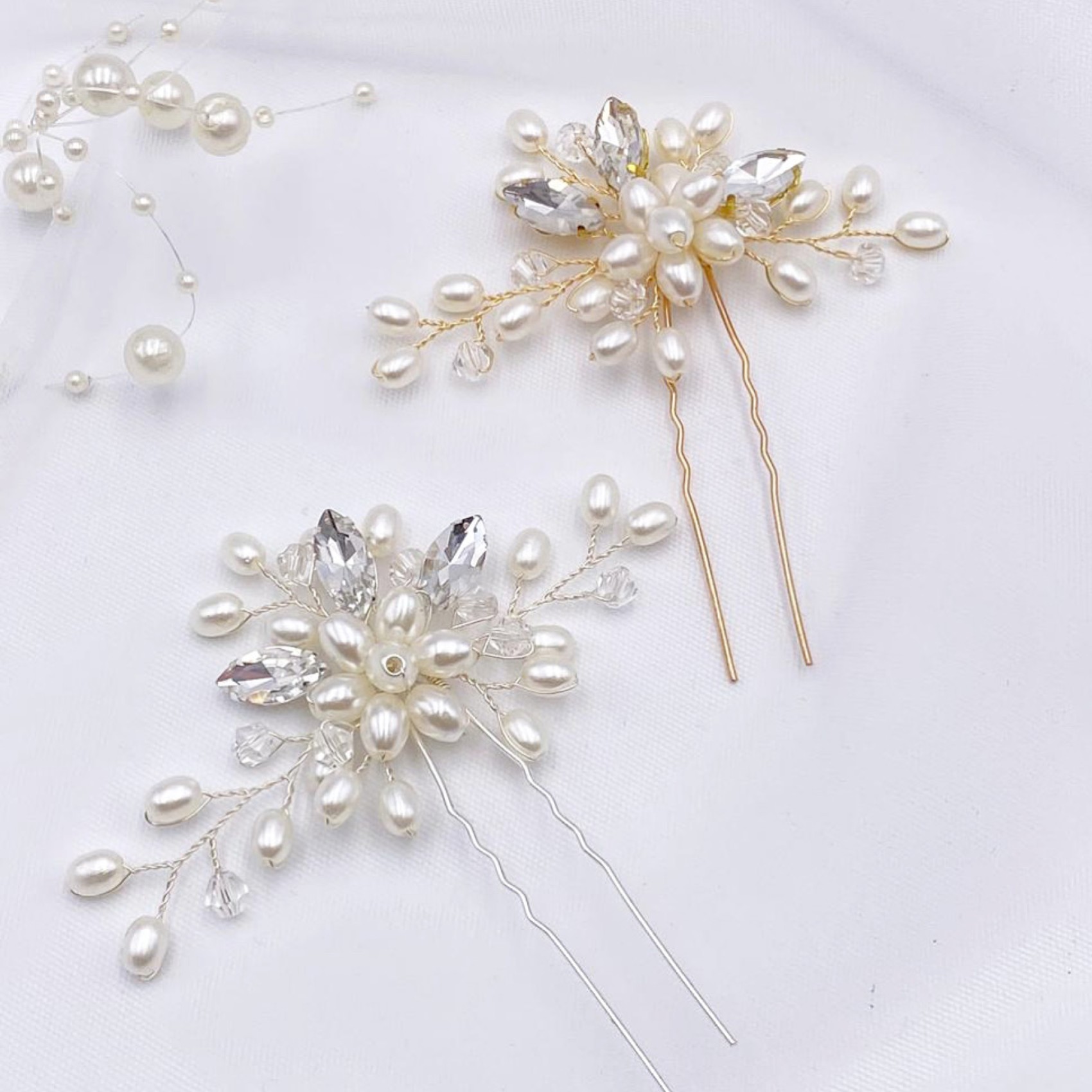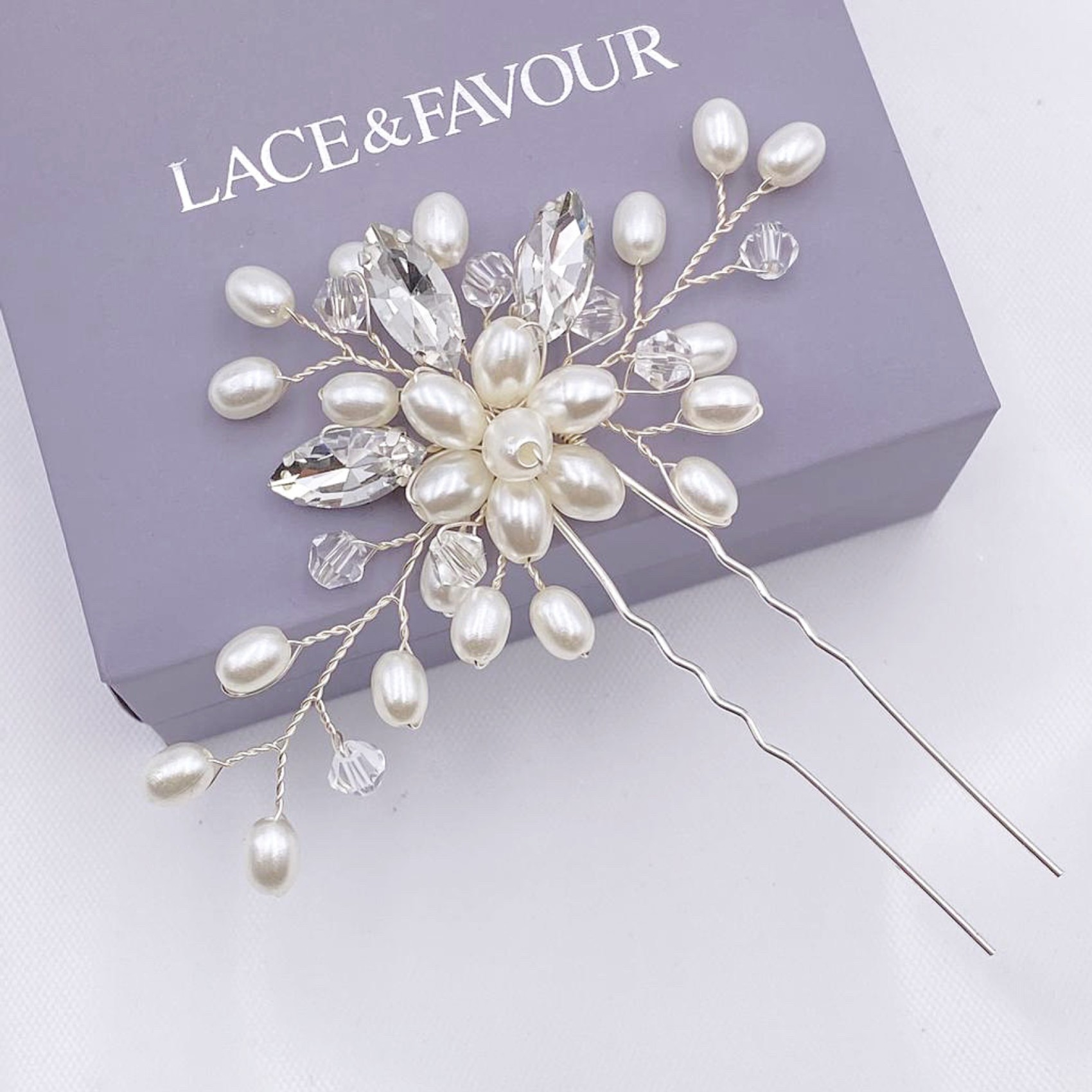 Une élégante épingle à cheveux classique pour mariage, composée d'une grappe de perles ivoire lumineuses et de délicates branches de cristaux marquise scintillants et de perles transparentes. Cette jolie épingle à cheveux est magnifique portée seule dans les cheveux ou pour un look plus audacieux, portez deux ou trois épingles. Parfait pour les mariées et les demoiselles d'honneur, cet accessoire de coiffure délicat constitue un magnifique cadeau de mariage.
