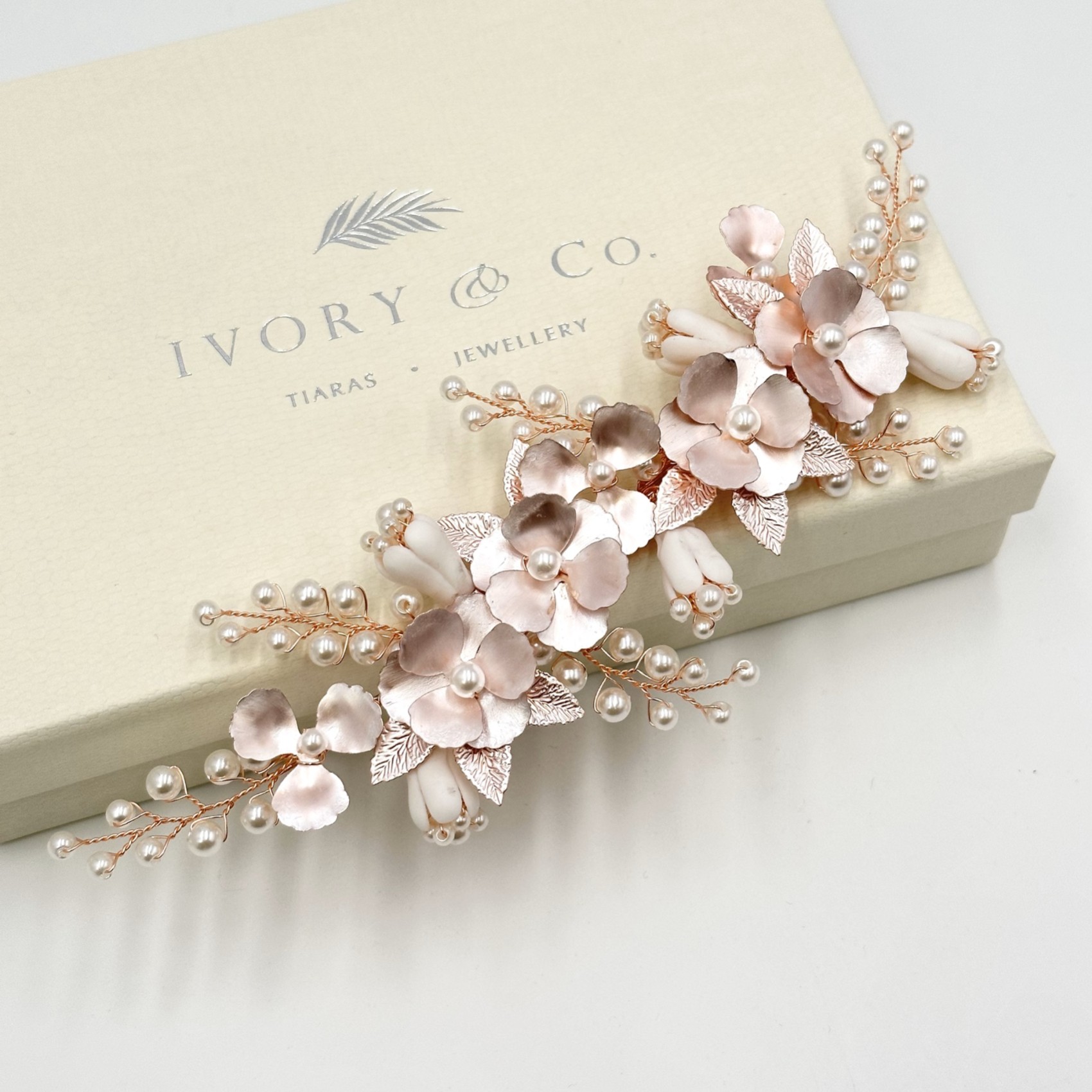 Ivory and Co Pince à cheveux Spring Dream Rose Gold Floral Pearl | SPRINGDREAMRG-IVC