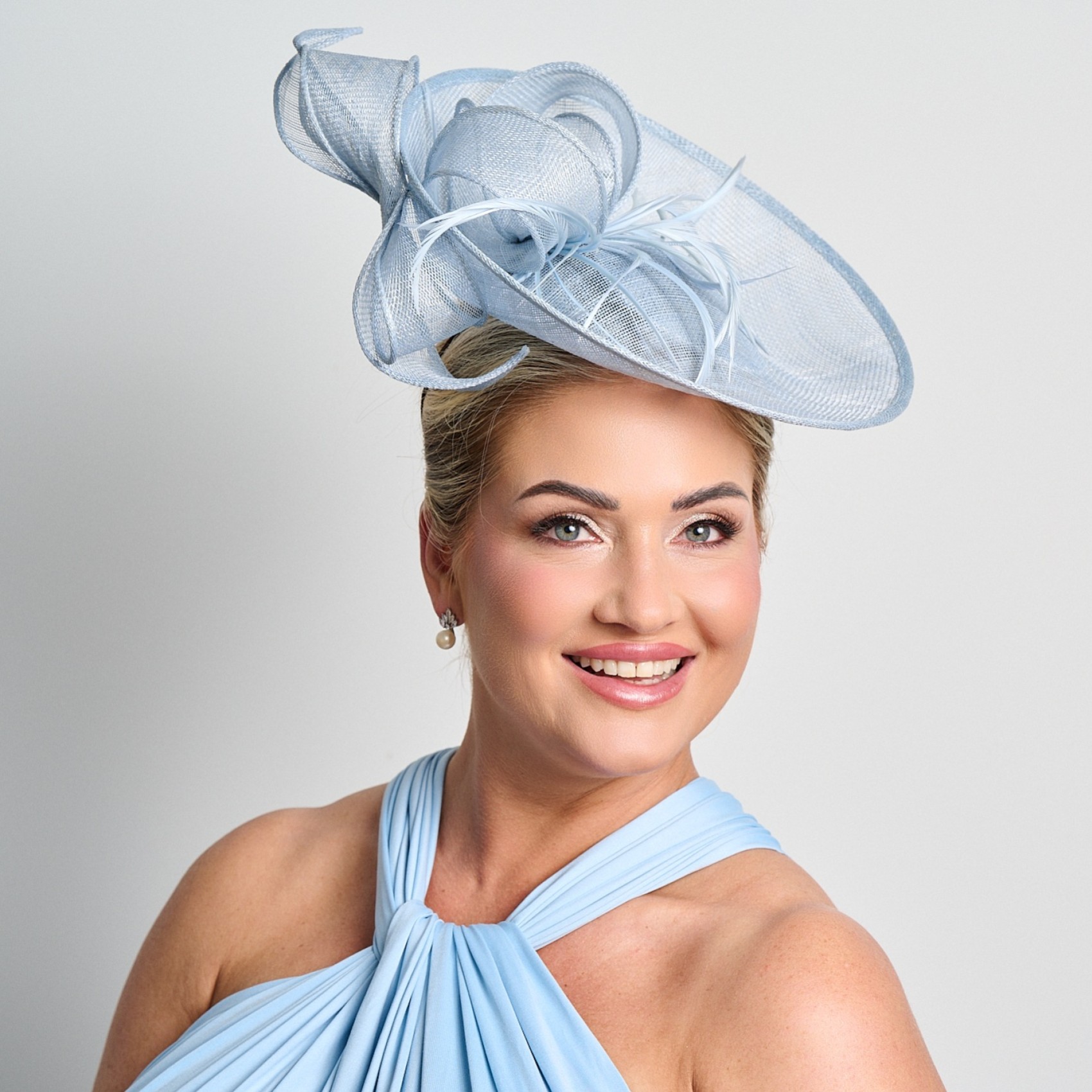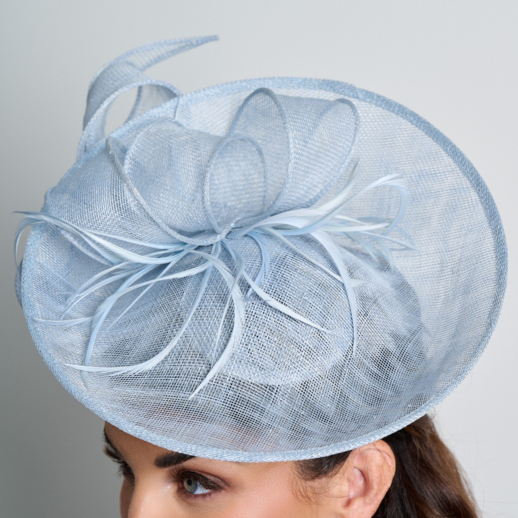 Ce superbe fascinateur de mariage bleu bleuet est fabriqué à partir d'une large base légère en sinamay, décorée de plumes délicates et de boucles douces en sinamay. D'une grande élégance, ce fascinateur à disque est attaché à un bandeau discret et confortable qui permet de le porter facilement. Des mariages aux courses, cet élégant chapeau bleu bleuet est parfait pour toutes les occasions spéciales. Un choix flatteur pour la mère de la mariée ou du marié, ce fascinateur de mariage ajoutera la touche finale parfaite à votre tenue.