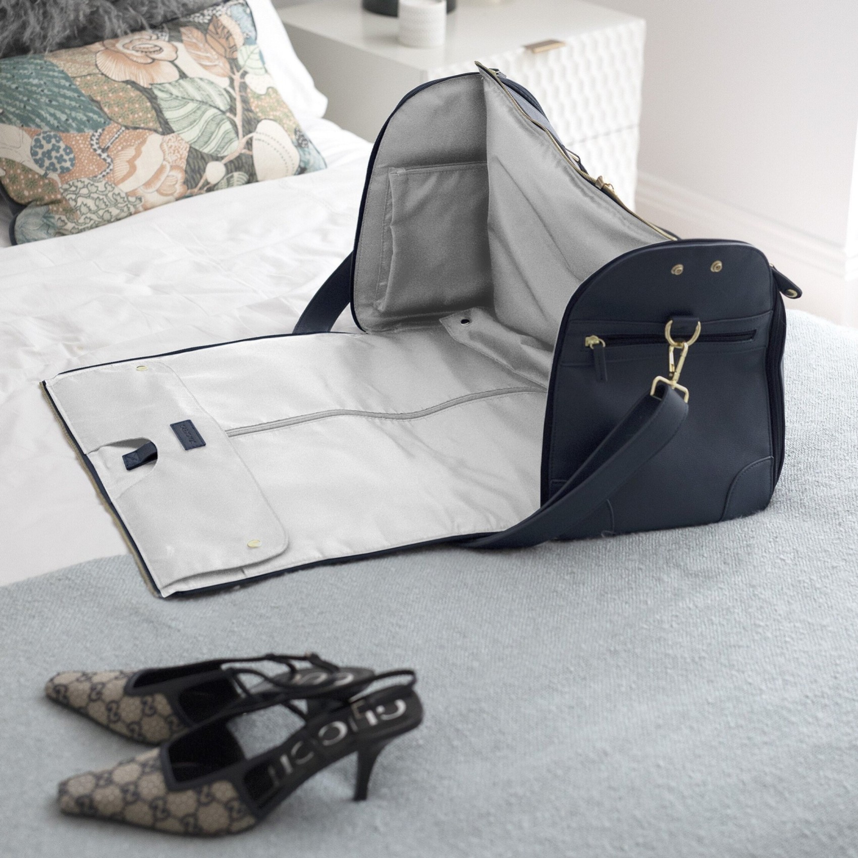 Le sac à vêtements stackers navy weekend a réinventé la façon dont vous voyagez, que ce soit pour le travail ou pour le plaisir. Idéale pour les week-ends, en particulier les mariages ou les réceptions officielles, cette pochette à vêtements se transforme en fourre-tout de week-end une fois refermée, ce qui réduit de moitié le nombre de bagages à emporter ! Les côtés et le haut se dézippent pour dévoiler le sac à vêtements à l'intérieur, qui peut être suspendu une fois arrivé à destination.