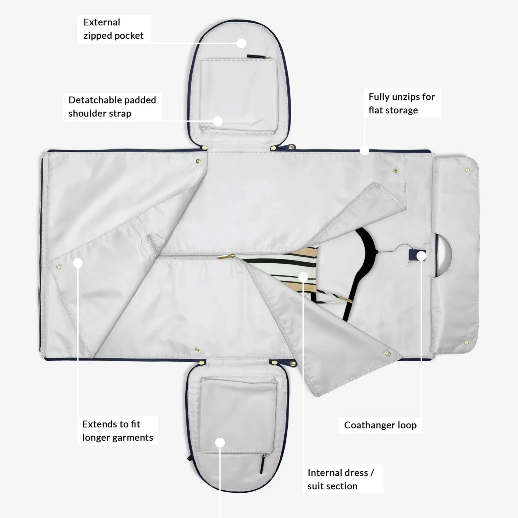 - Peut être suspendu lorsqu'il est dézippé