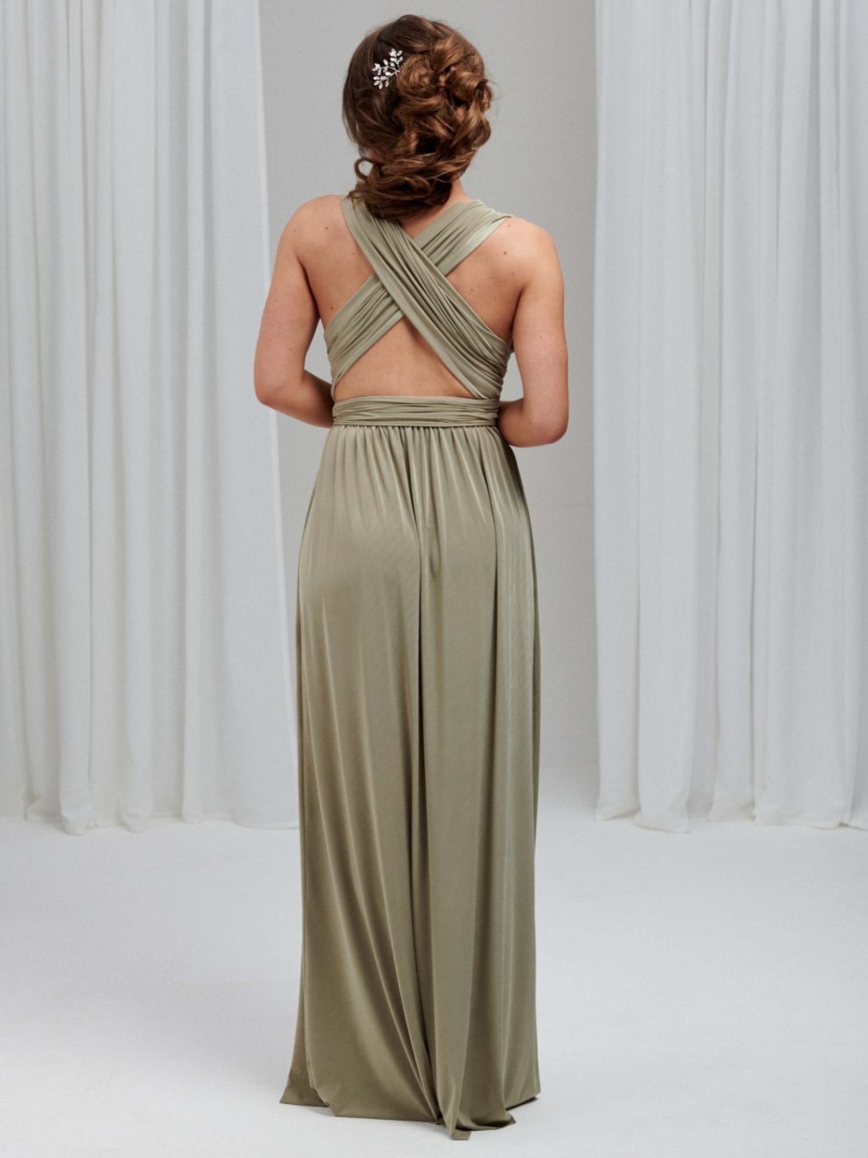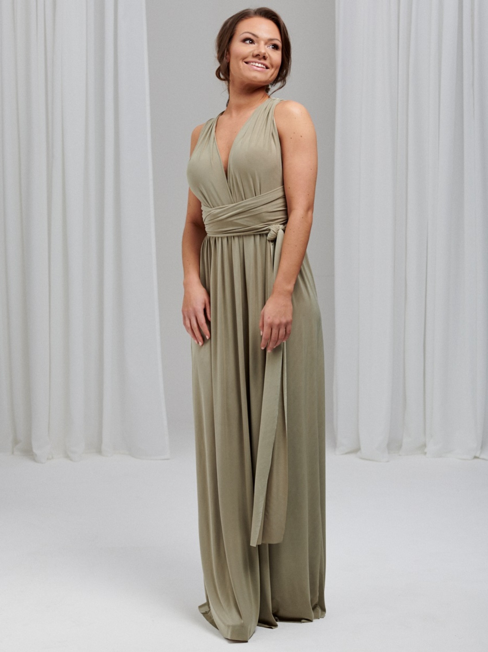 Notre luxueuse robe de demoiselle d'honneur multivoie vert sauge en stock est la solution parfaite pour toutes vos demoiselles d'honneur. Fabriquée à la main à partir d'un tissu extensible très épais, cette robe maxi multi-couches taille unique est très douce au toucher et peut être portée d'innombrables façons différentes pour convenir à toutes les tailles et à toutes les silhouettes. Les robes de demoiselle d'honneur Infinity sont parfaites pour les mariées qui ne savent pas quel style de robe choisir (vous pouvez littéralement décider le matin du mariage !) Elles constituent également la robe de demoiselle d'honneur idéale pour les femmes enceintes, car la ceinture extensible peut être placée au-dessus du ventre.