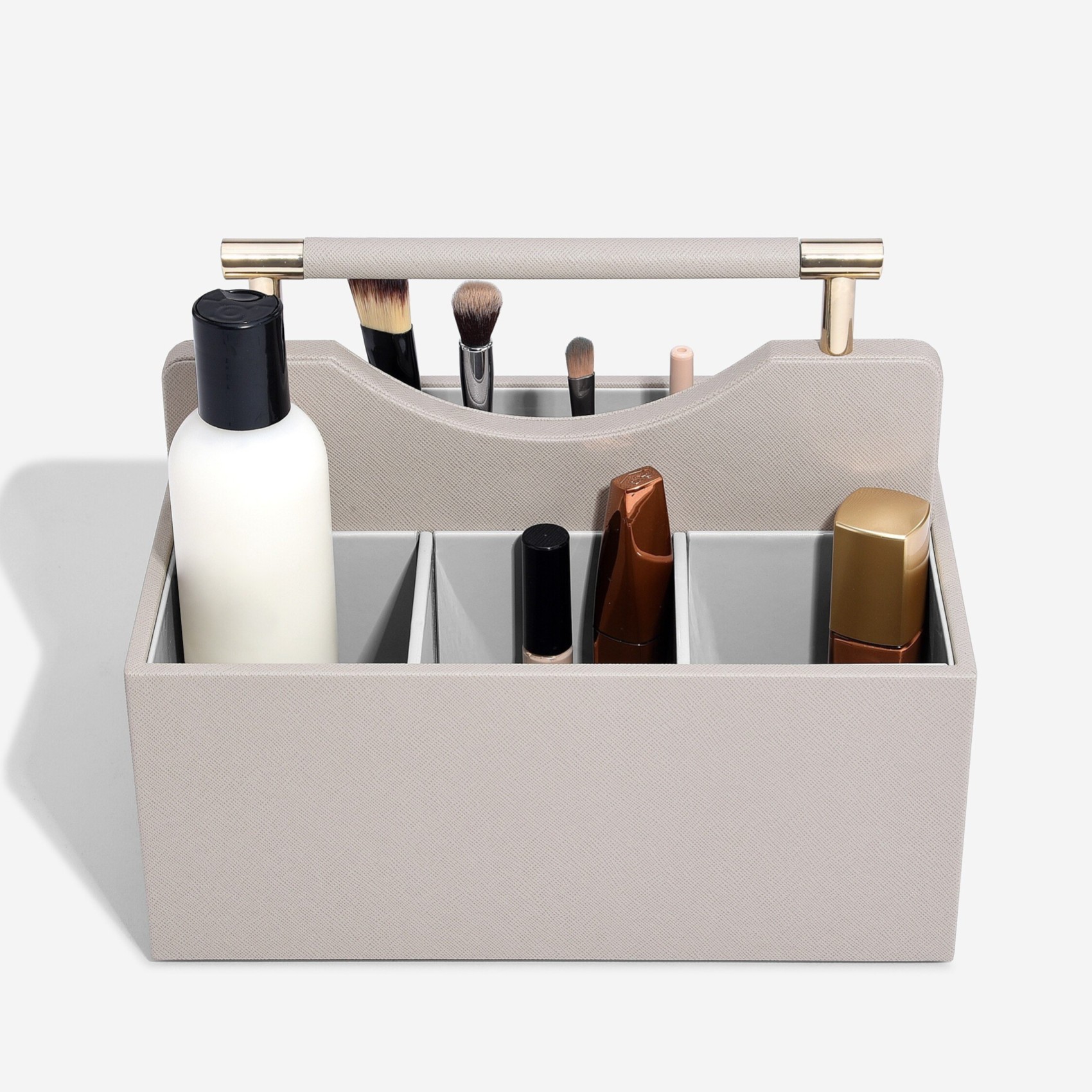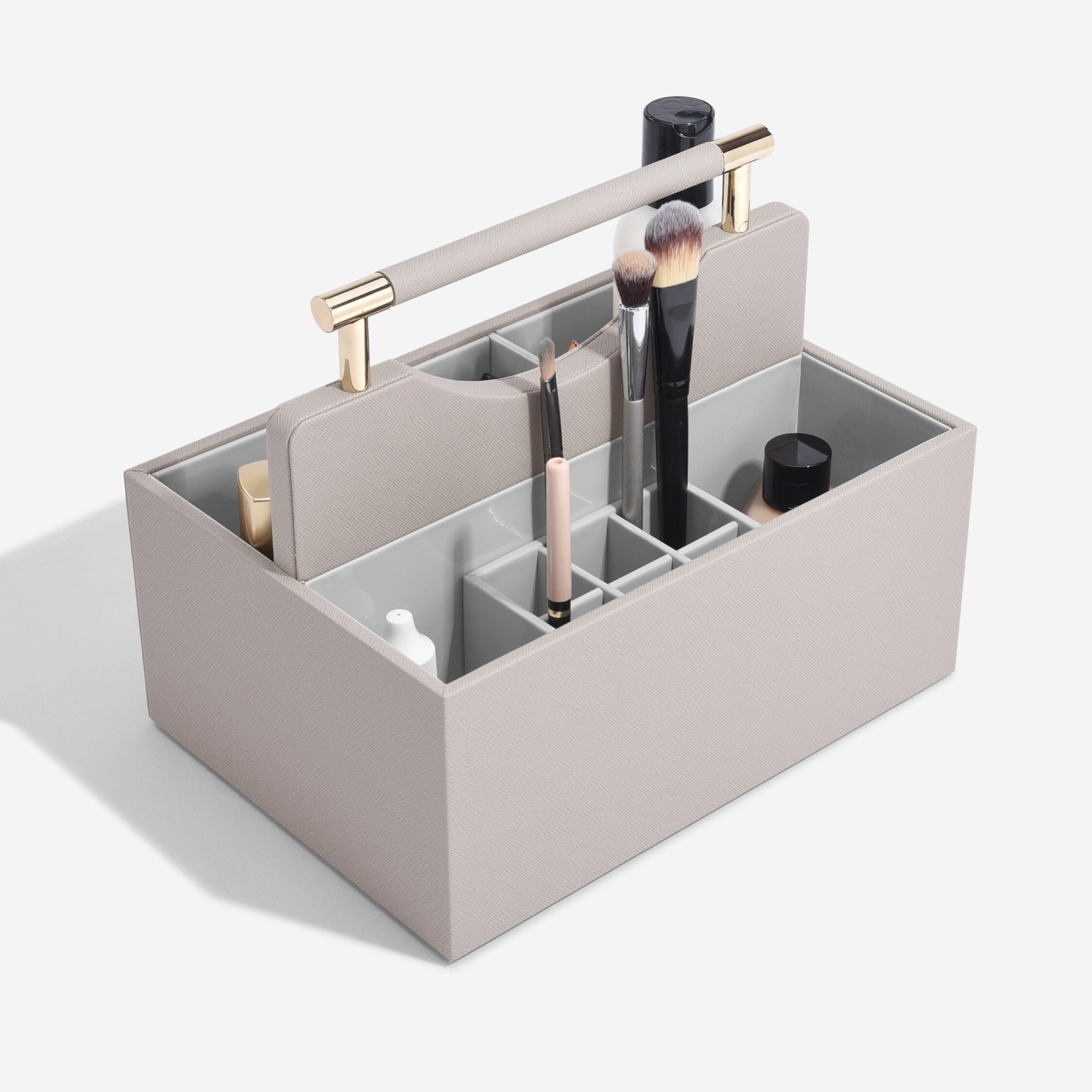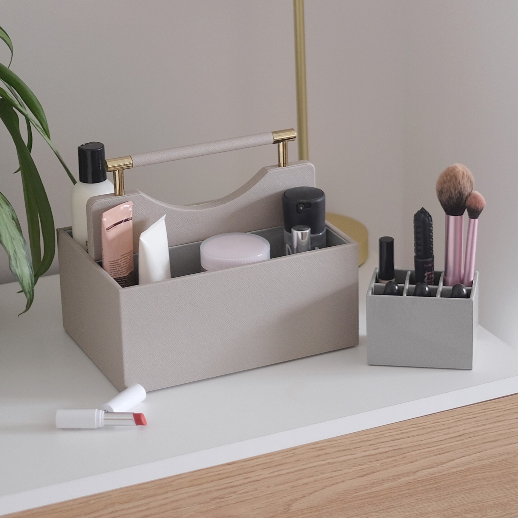 Cet élégant organisateur de cosmétiques de couleur taupe est parfait pour vos cosmétiques de tous les jours et offre un rangement élégant pour vos soins, votre maquillage et votre parfum. Avec un accès facile à vos essentiels quotidiens, il est idéal pour désencombrer une coiffeuse ou une salle de bains. L'intérieur gris est essuyable pour un nettoyage facile et il est doté d'une poignée de transport pour que vous puissiez le déplacer facilement d'une pièce à l'autre. Créez des sections adaptées à votre collection grâce aux séparateurs amovibles, qui offrent une grande flexibilité pour les cosmétiques de différentes tailles. Conseil : vous pouvez l'empiler avec vos couches et tiroirs classiques !
