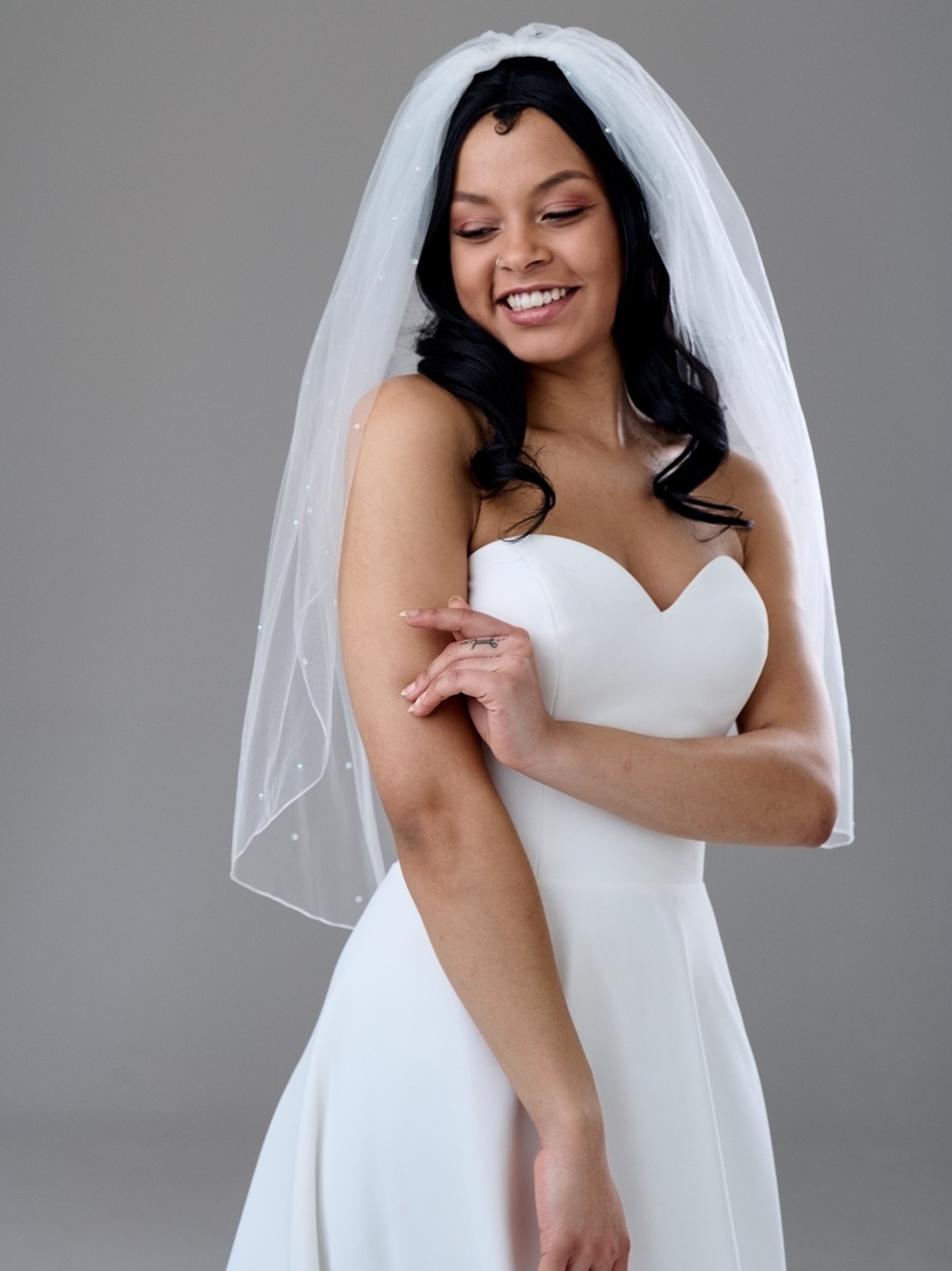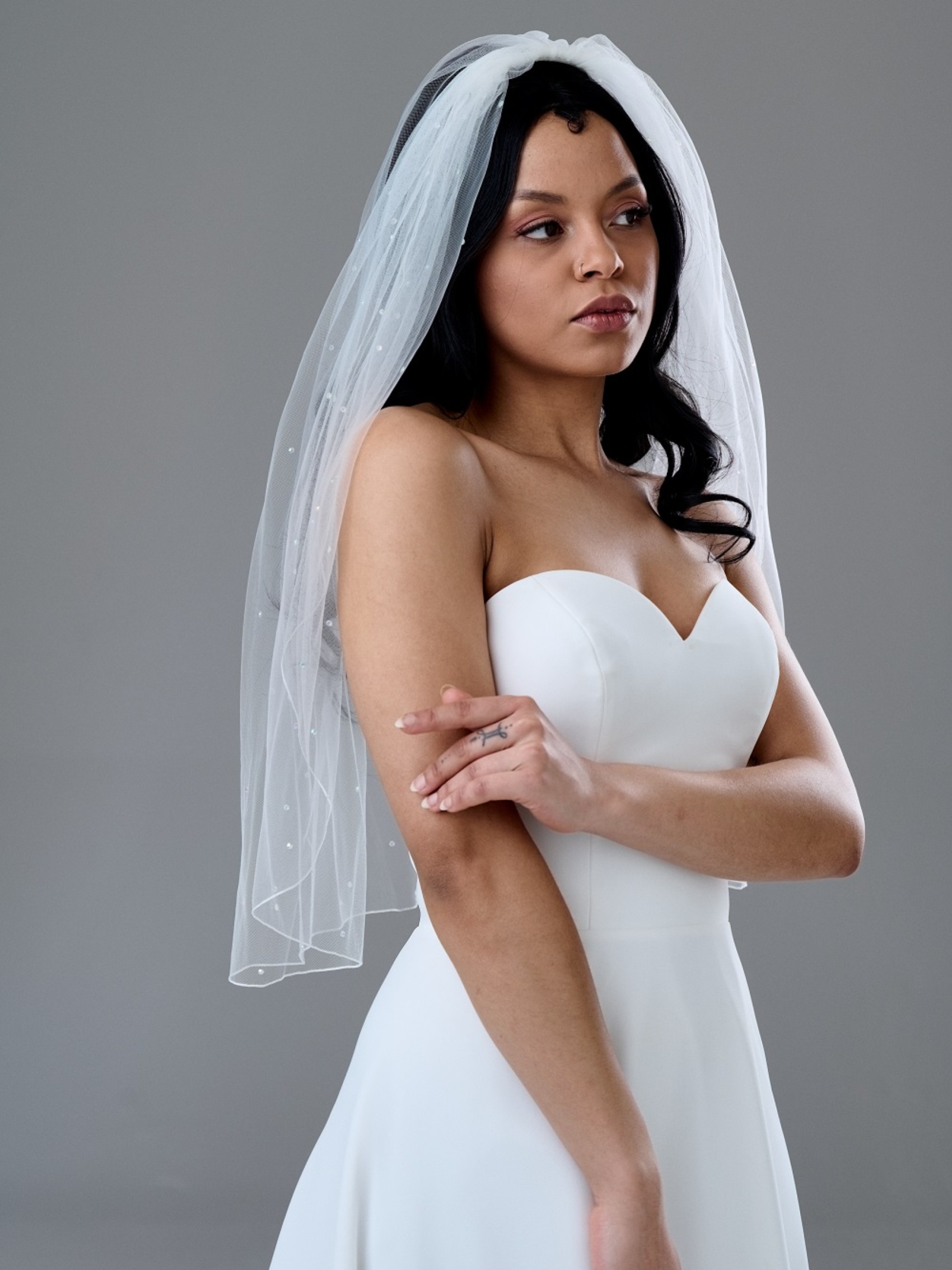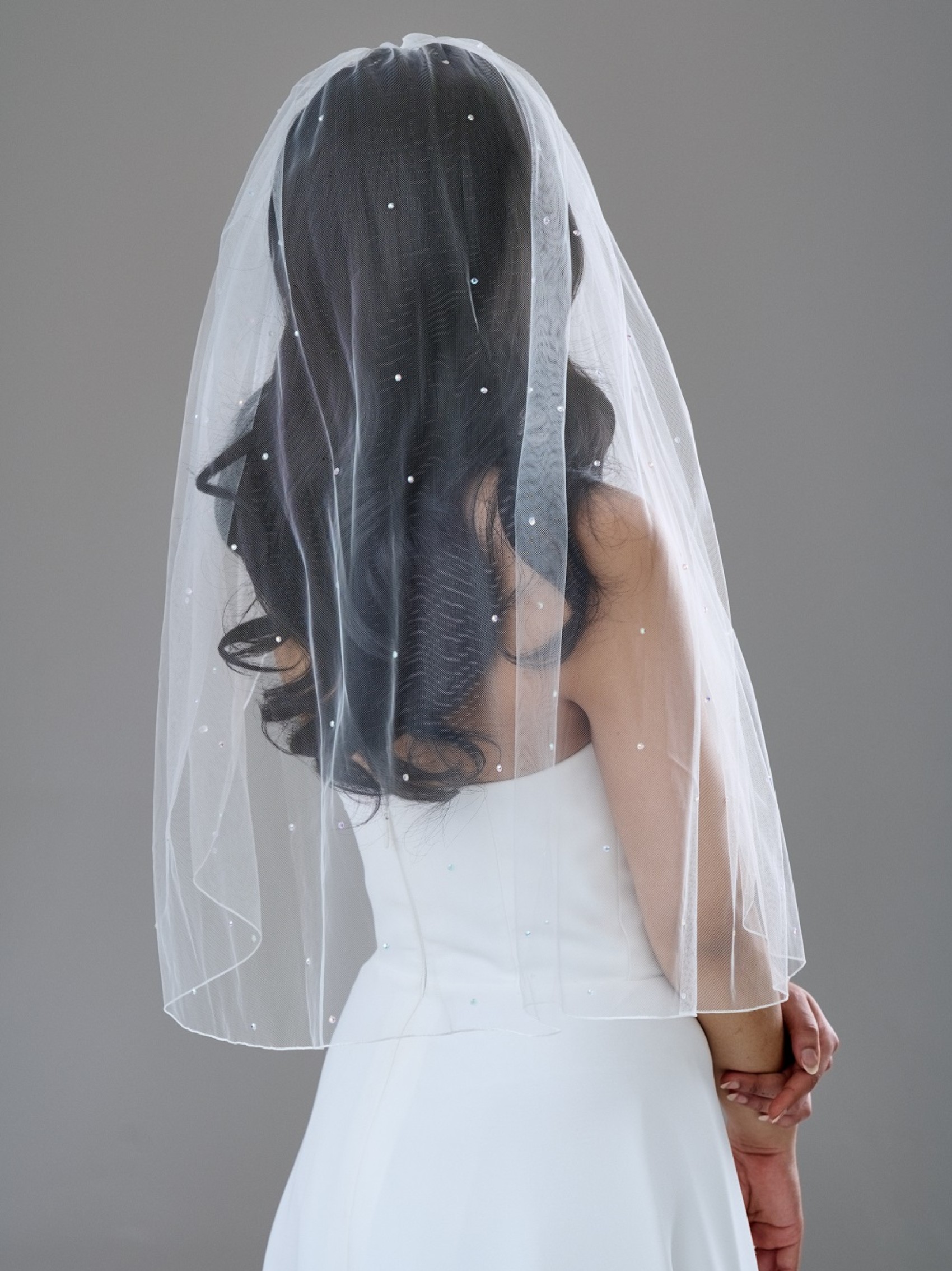 Lovely soft tulle veil with AB crystals. Not too overpowering against the wedding dress.