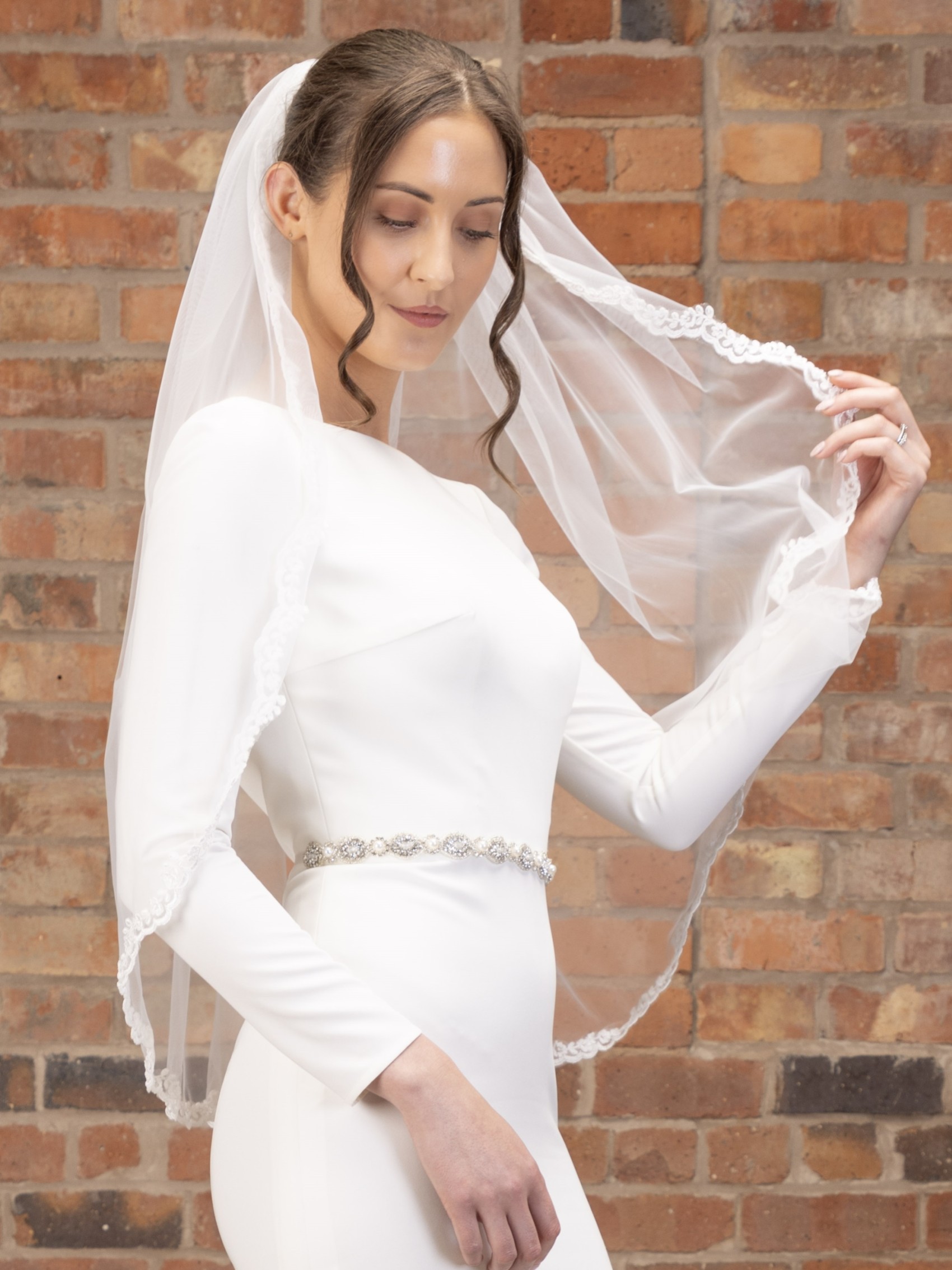 Perfect Bridal Voile court en dentelle cordée étroite, à un seul niveau, ivoire | PBV9007-90