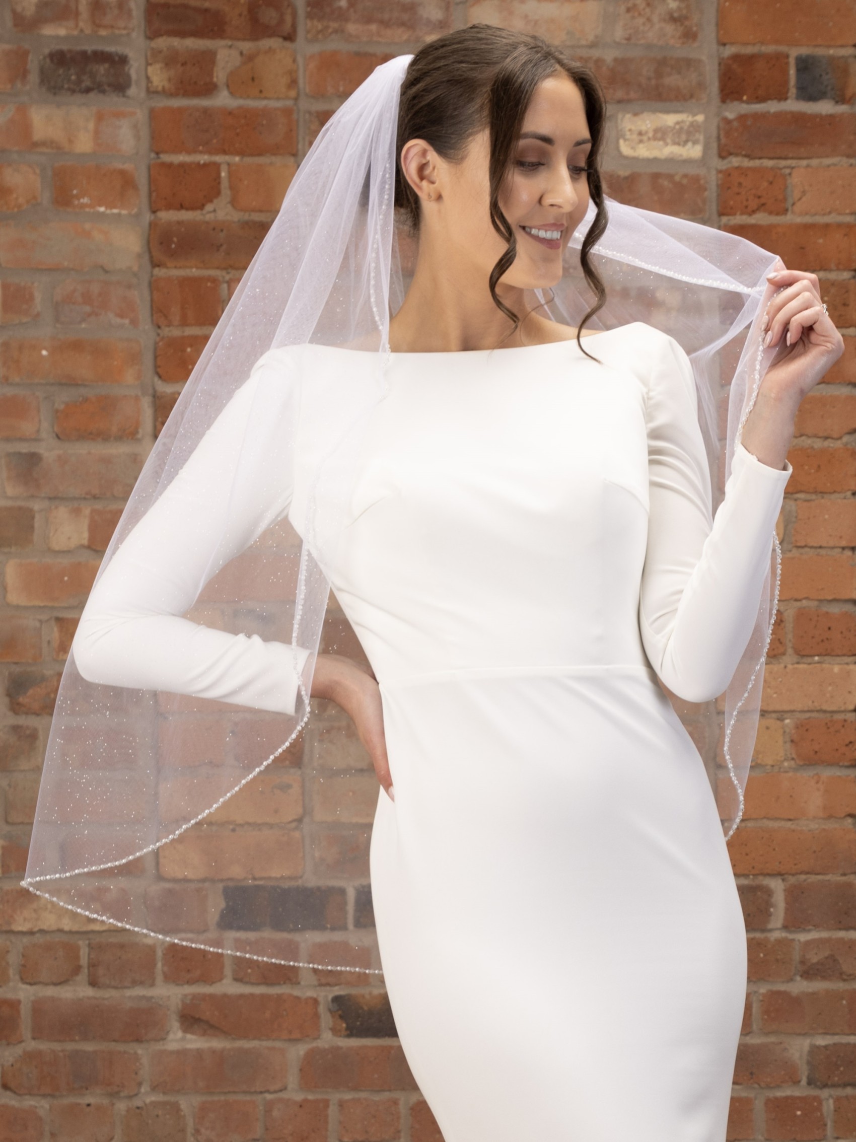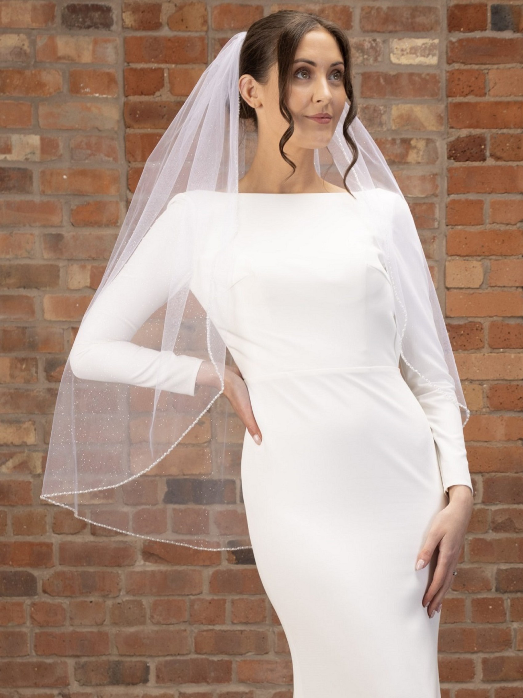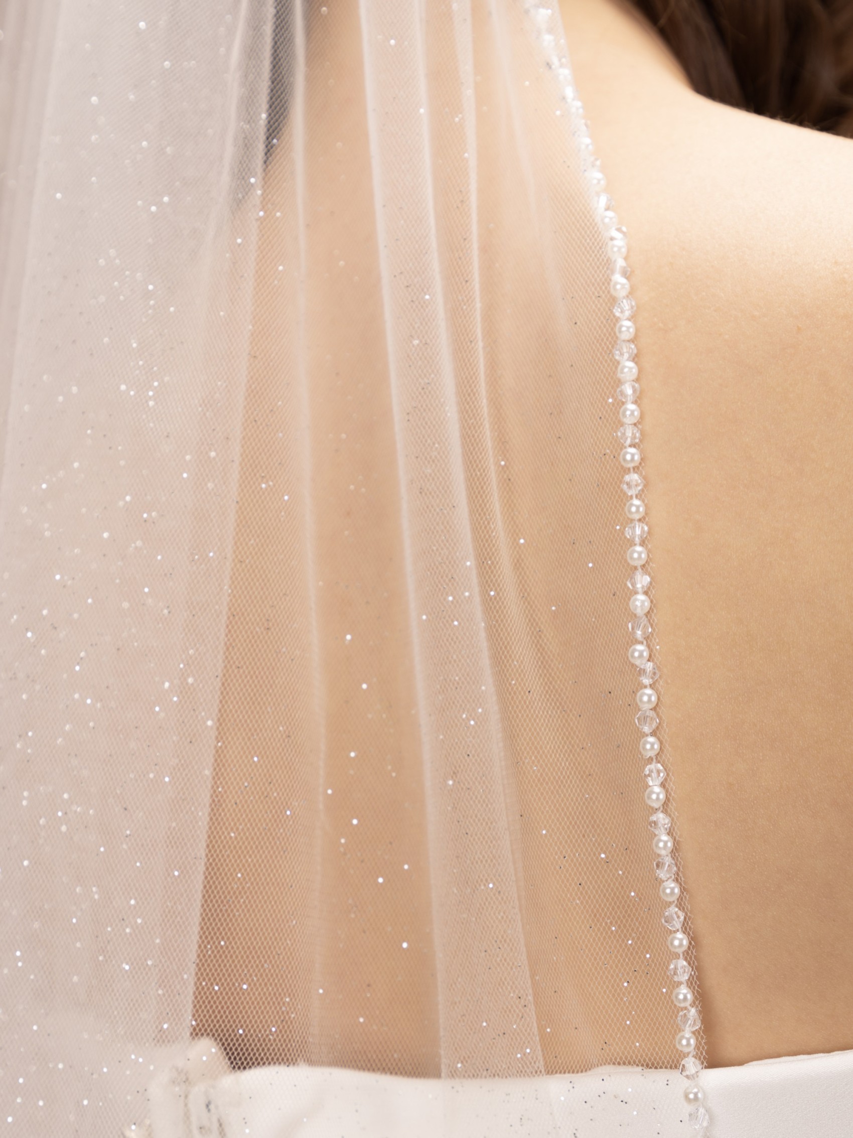 Tout ce qui brille... notre toute nouvelle version en tulle pailleté de notre voile le plus vendu PBV9024. Un voile de mariée élégant fait à la main à partir d'une seule couche de tulle scintillant ivoire, avec un bord simple coupé à la main et délicatement détaillé avec des perles et des cristaux scintillants. D'une élégance classique, mais à la mode et moderne, ce voile est tout ce qu'il y a de plus beau !