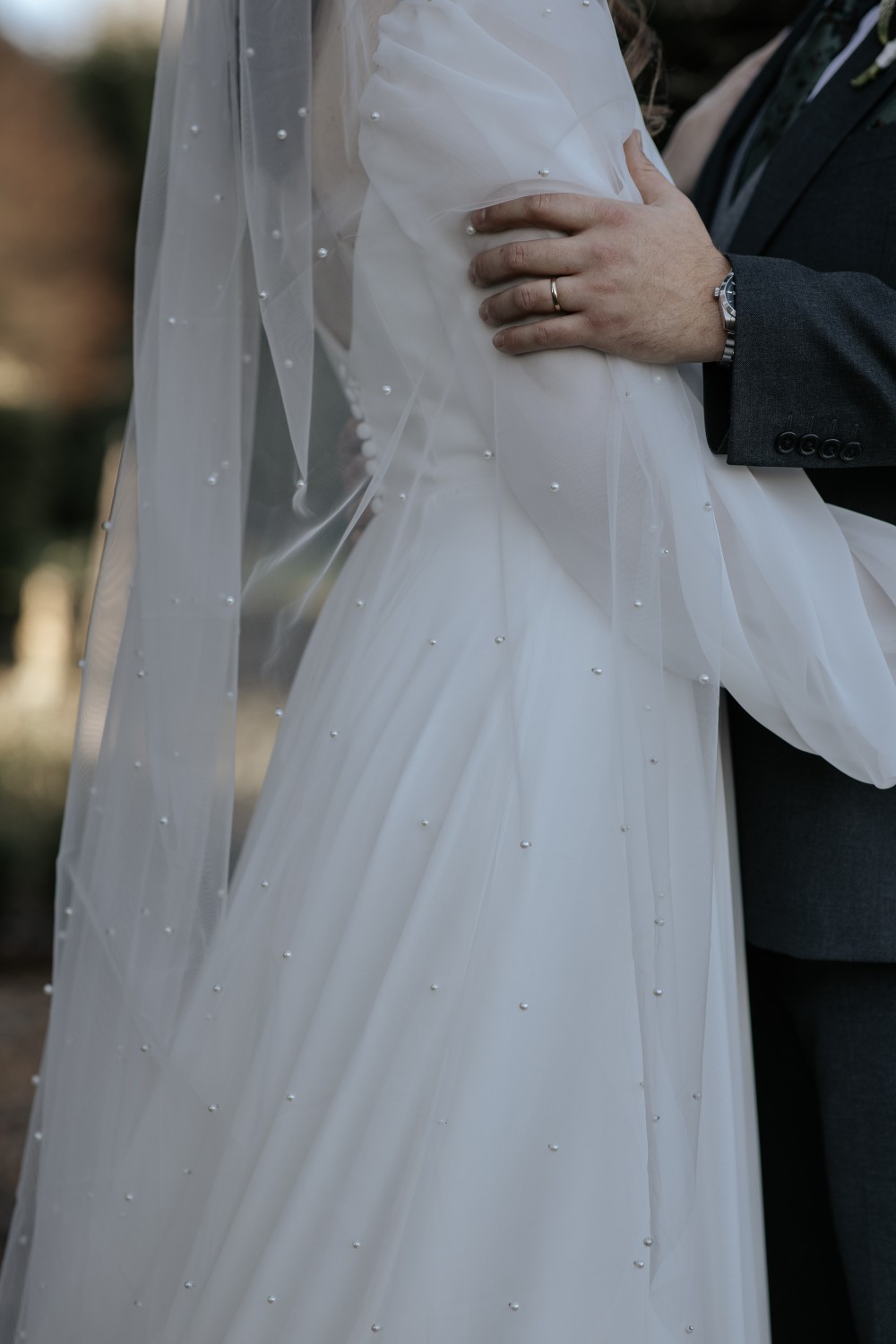 Le voile est muni d'un peigne en métal pour le maintenir en place.