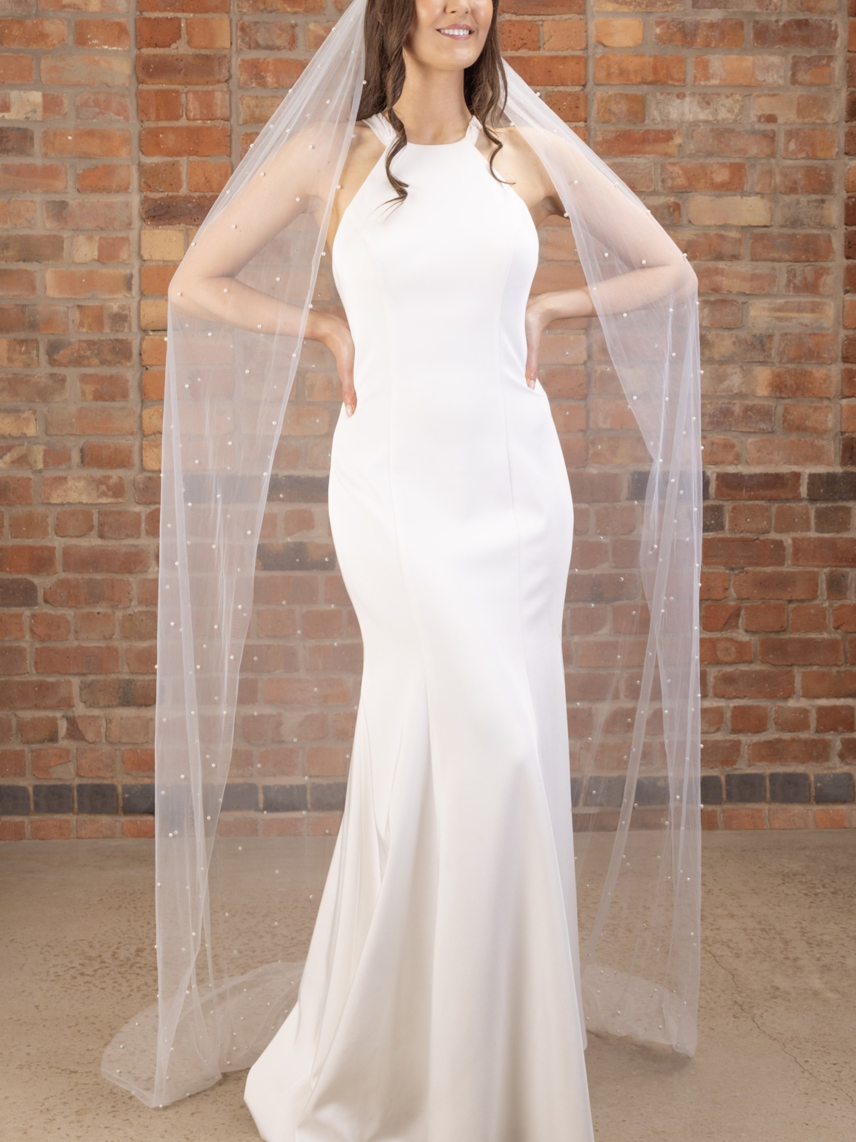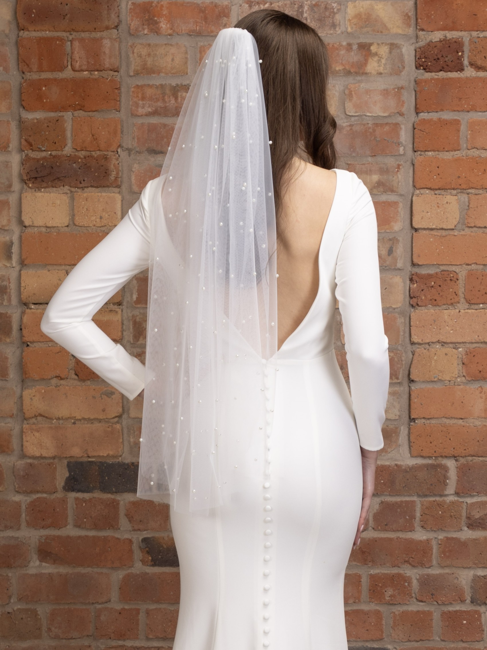 Ce magnifique voile de mariée est parsemé de dizaines de perles ivoires. Il est fabriqué à partir d'une seule couche de tulle ivoire doux et se termine par un bord simple, taillé à la main. Disponible en 4 longueurs différentes pour s'adapter parfaitement à votre tenue de mariée, ce voile de perles est un favori pour la mariée moderne !