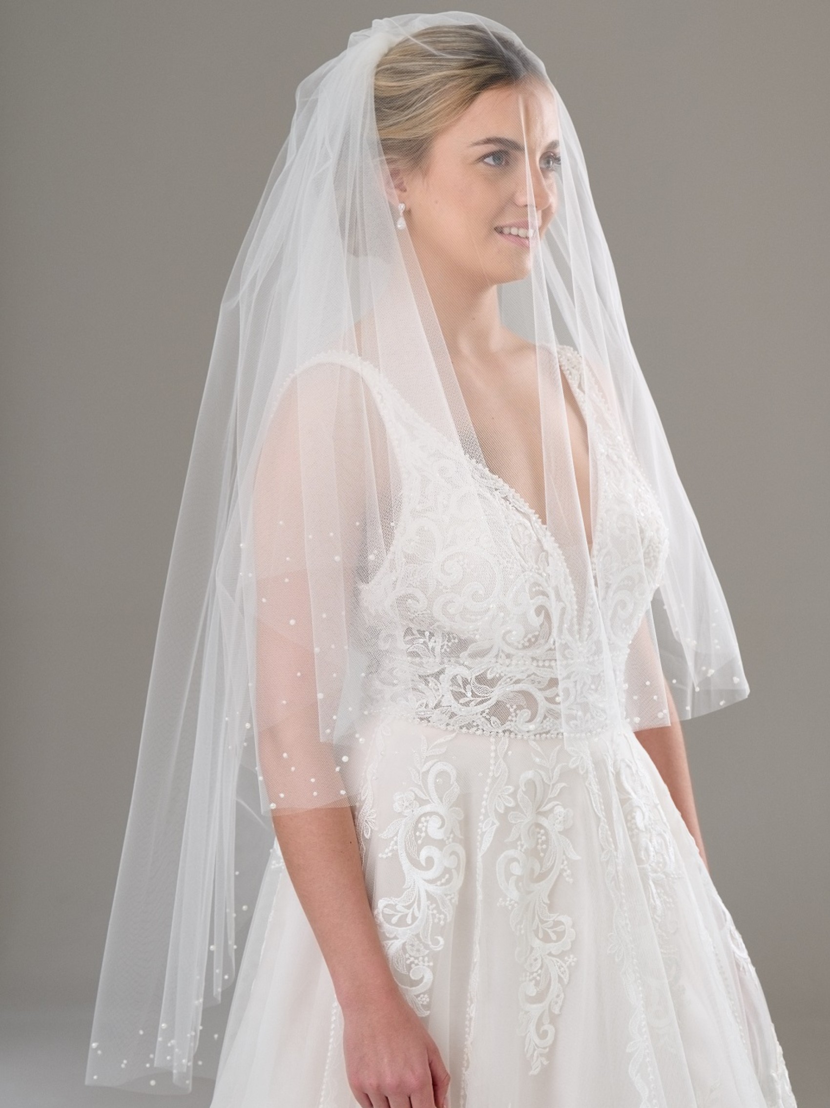 Notre joli voile Dorado perlé est composé de deux couches de tulle ivoire classique avec un bord coupé simple. Quelques rangées de jolies perles ornent les bords des deux étages pour un look discret mais magnifique. Disponible en 4 longueurs différentes, ce voile de mariée s'adapte à de nombreux styles de robes de mariée.