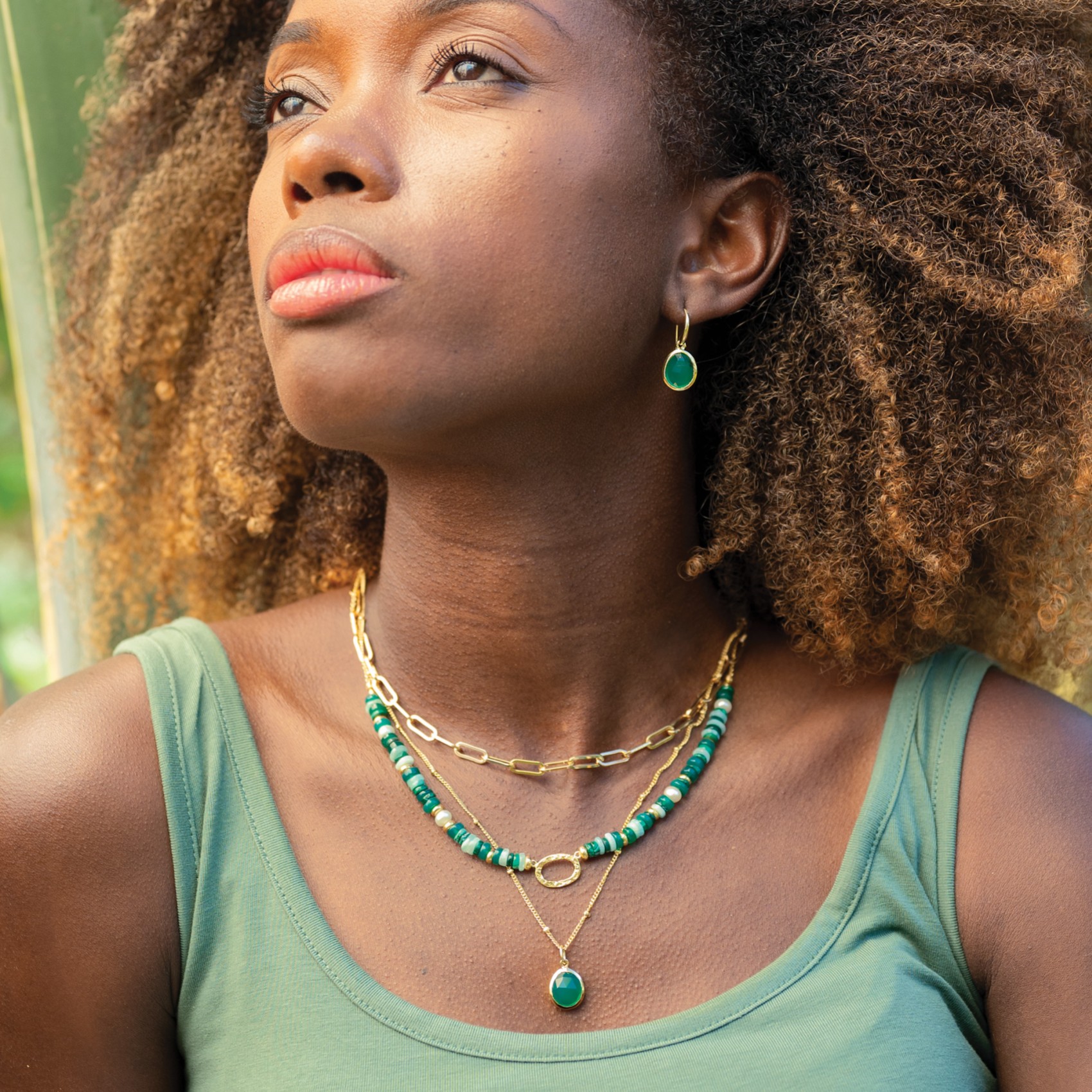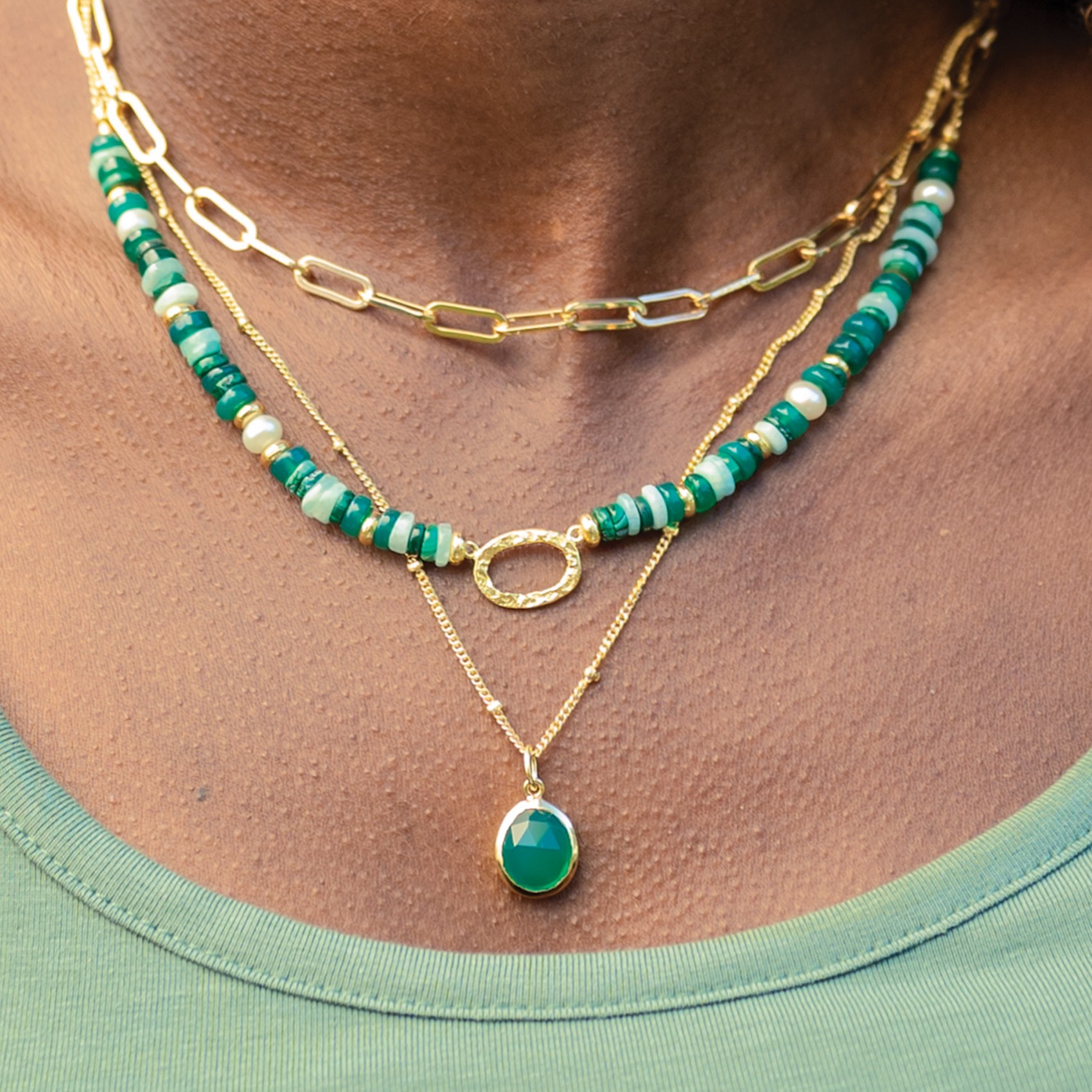 Sarah Alexander Nubia Green Onyx Gold Gemstone Necklace | NUBIAN-SA