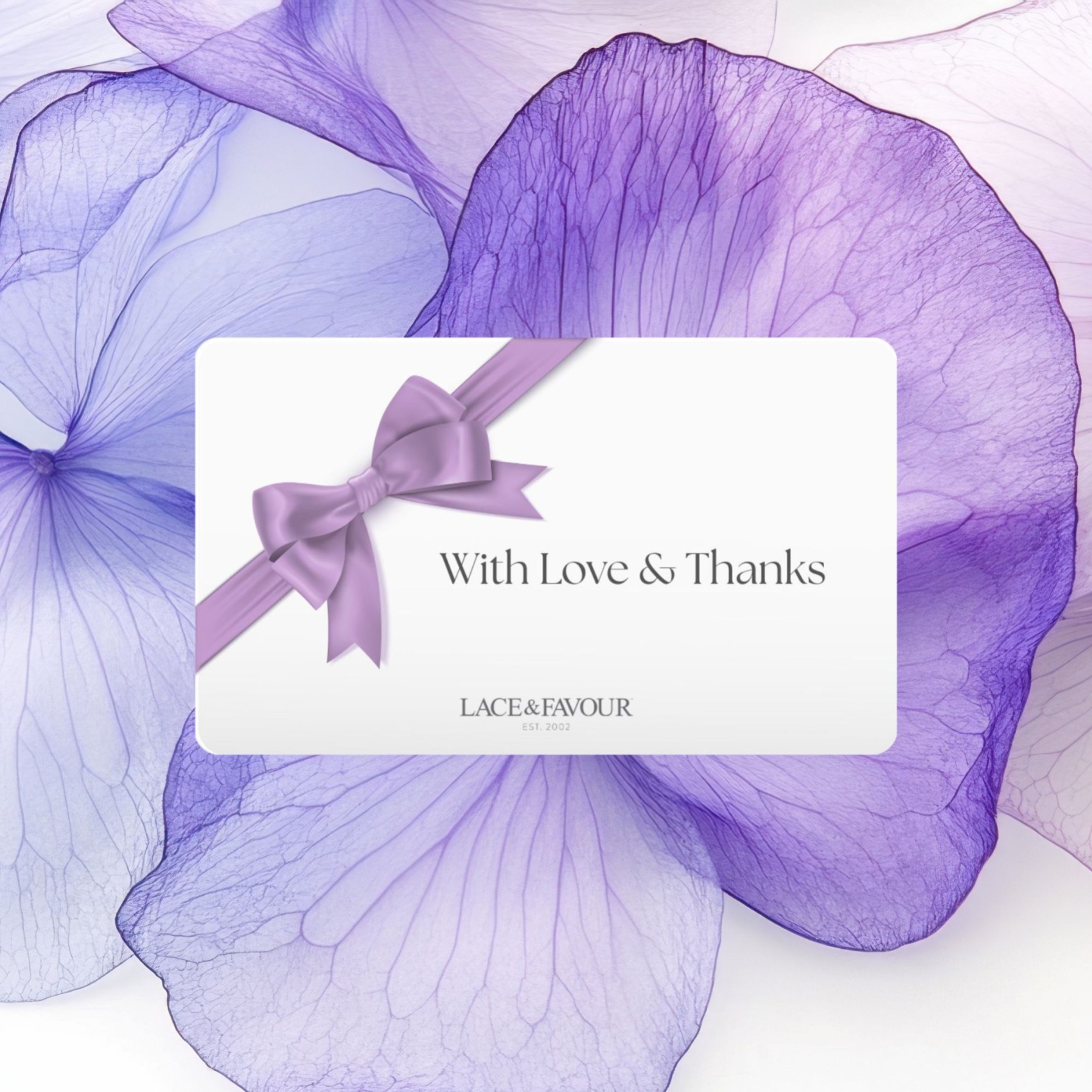 Available in a range of values and redeemable online at laceandfavour.com - REDEEM HERE