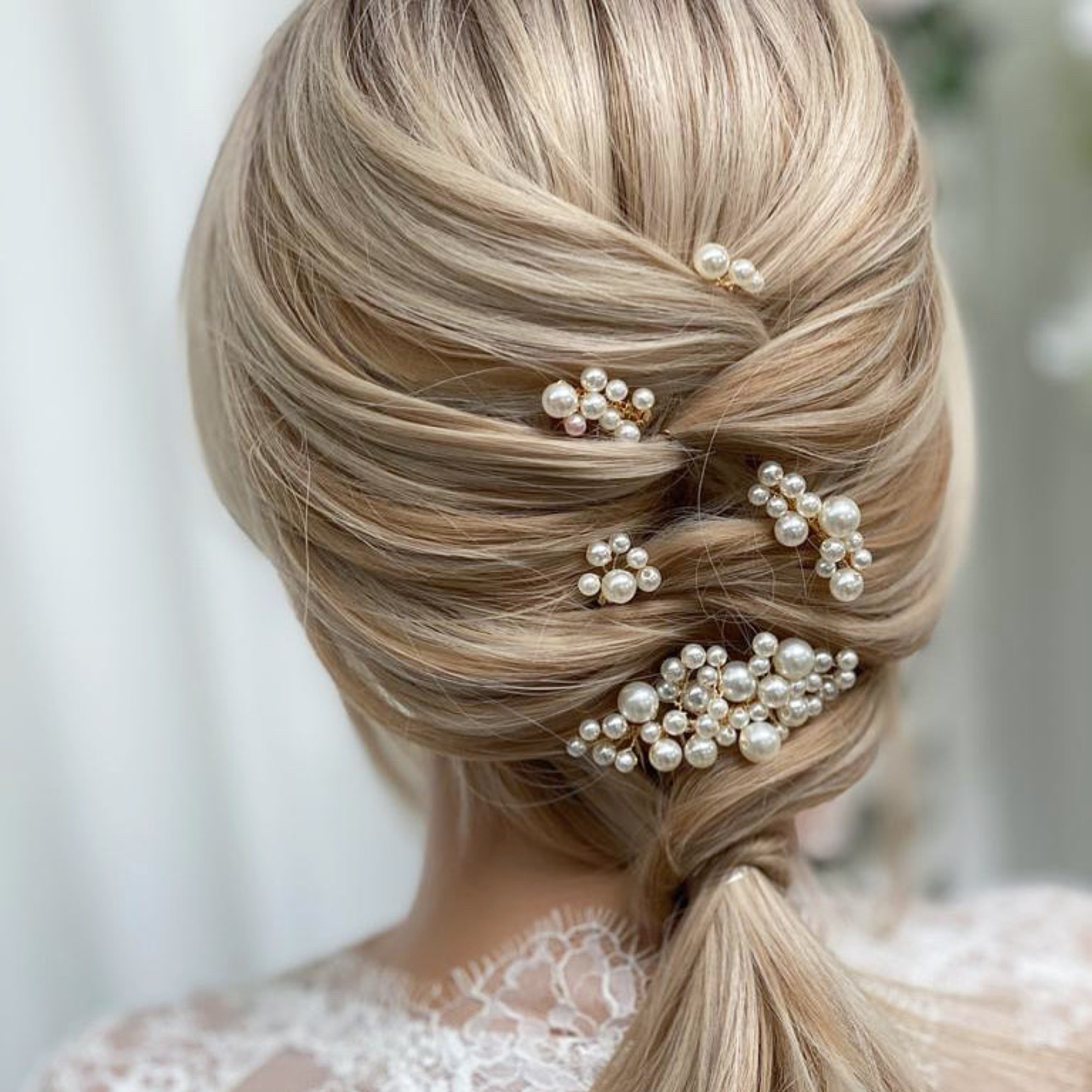 Non pensavamo di poter trovare un nuovo accessorio per capelli preferito, ma forse ci siamo riusciti! Vi presentiamo Macie: il più grazioso set di 5 mini pettini e spille dorati realizzati con perle avorio di varie dimensioni. Da spargere in qualsiasi acconciatura da sposa, per un'aggiunta meravigliosa alla vostra acconciatura nuziale.