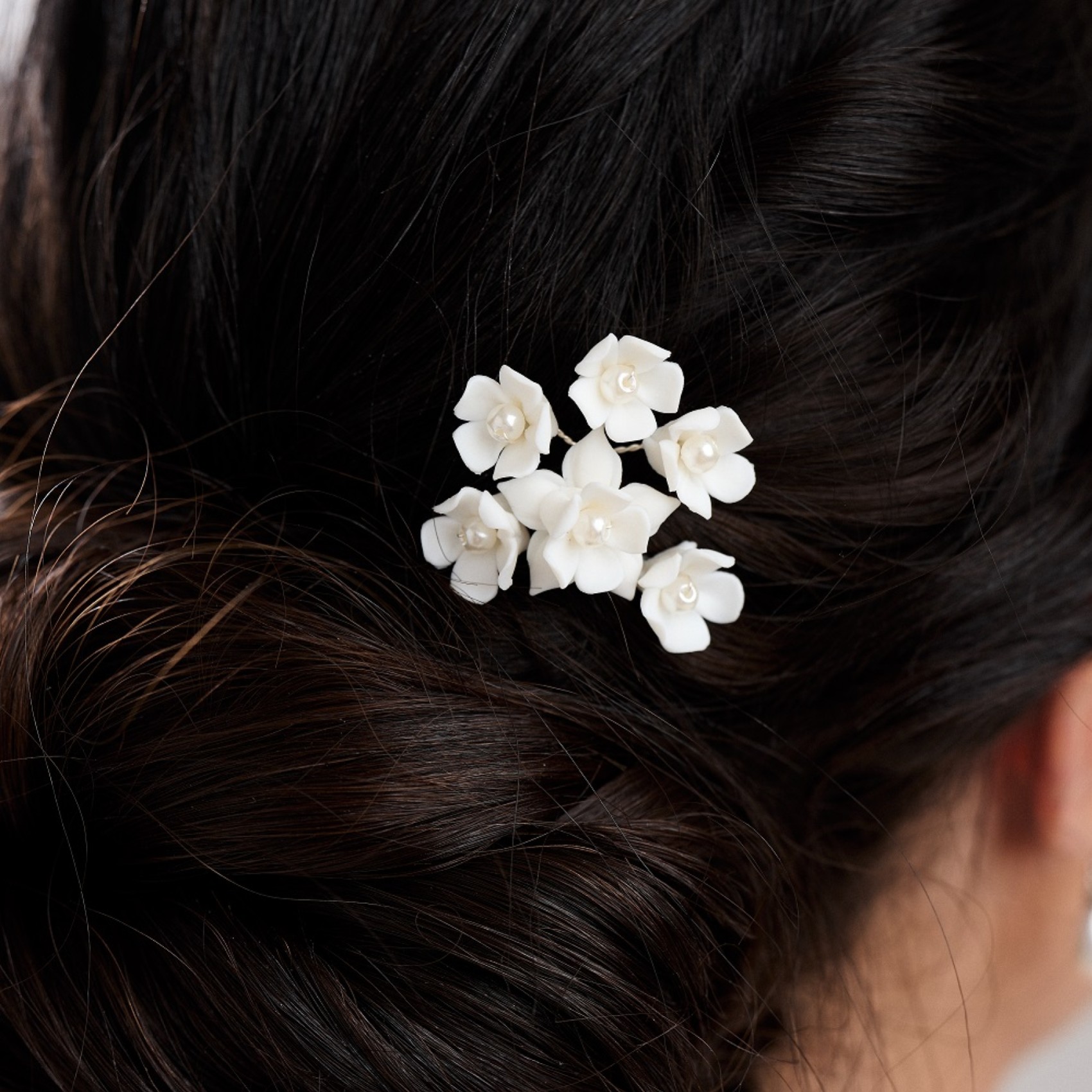 La nostra graziosa spilla per capelli Posy è creata con un grazioso grappolo di fiori in ceramica avorio intricatamente lavorati a mano e decorati con perle. Da indossare da soli, in coppia o in trio per decorare i capelli della sposa con un tocco di bellezza floreale.