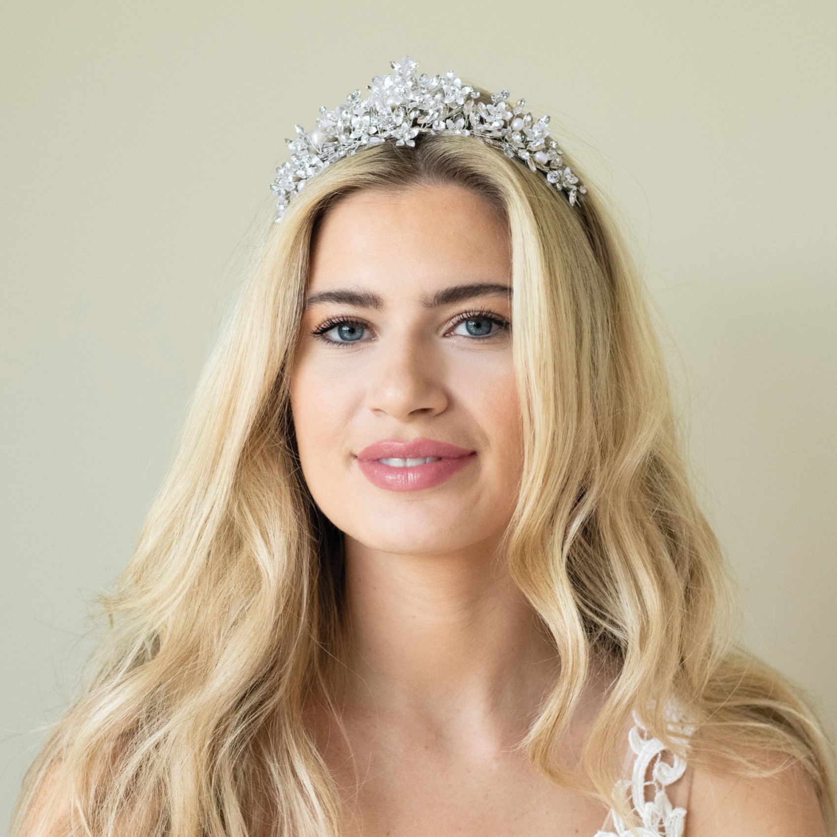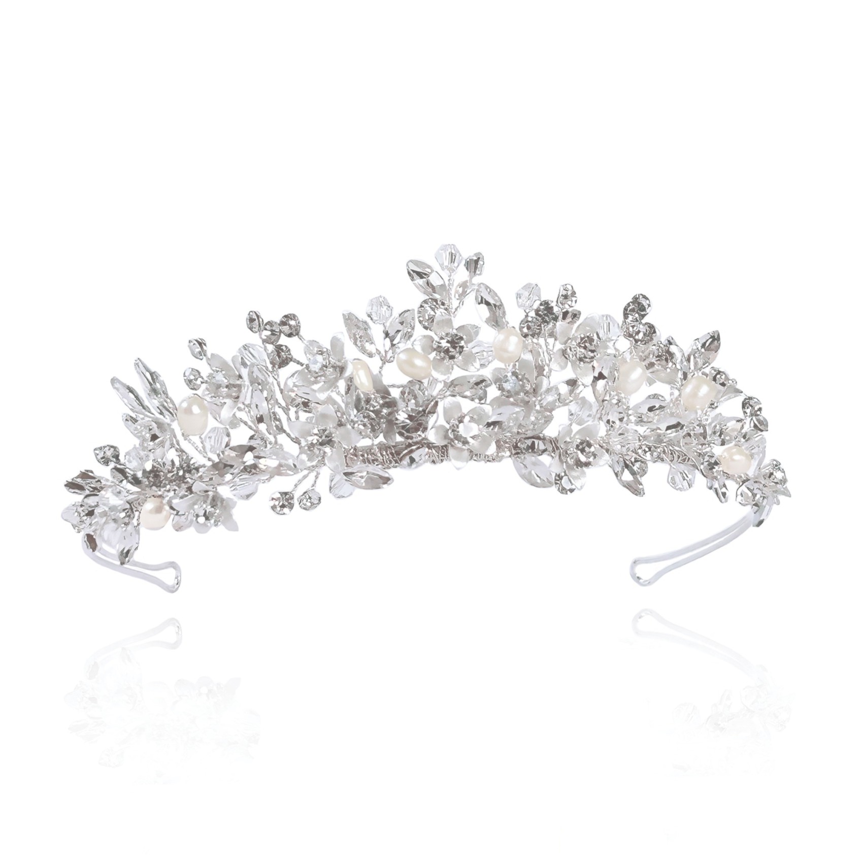 Novità assoluta per il 2023, ecco "Samira" di Ivory & Co. Un bellissimo e romantico diadema floreale realizzato a mano con delicati fiori smaltati in argento, cristalli scintillanti e luminose perle color avorio. Il copricapo perfetto per un matrimonio da favola.