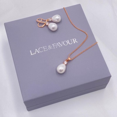1 of 1 Set di gioielli da sposa Dolci in oro rosa, cristalli e perle a goccia