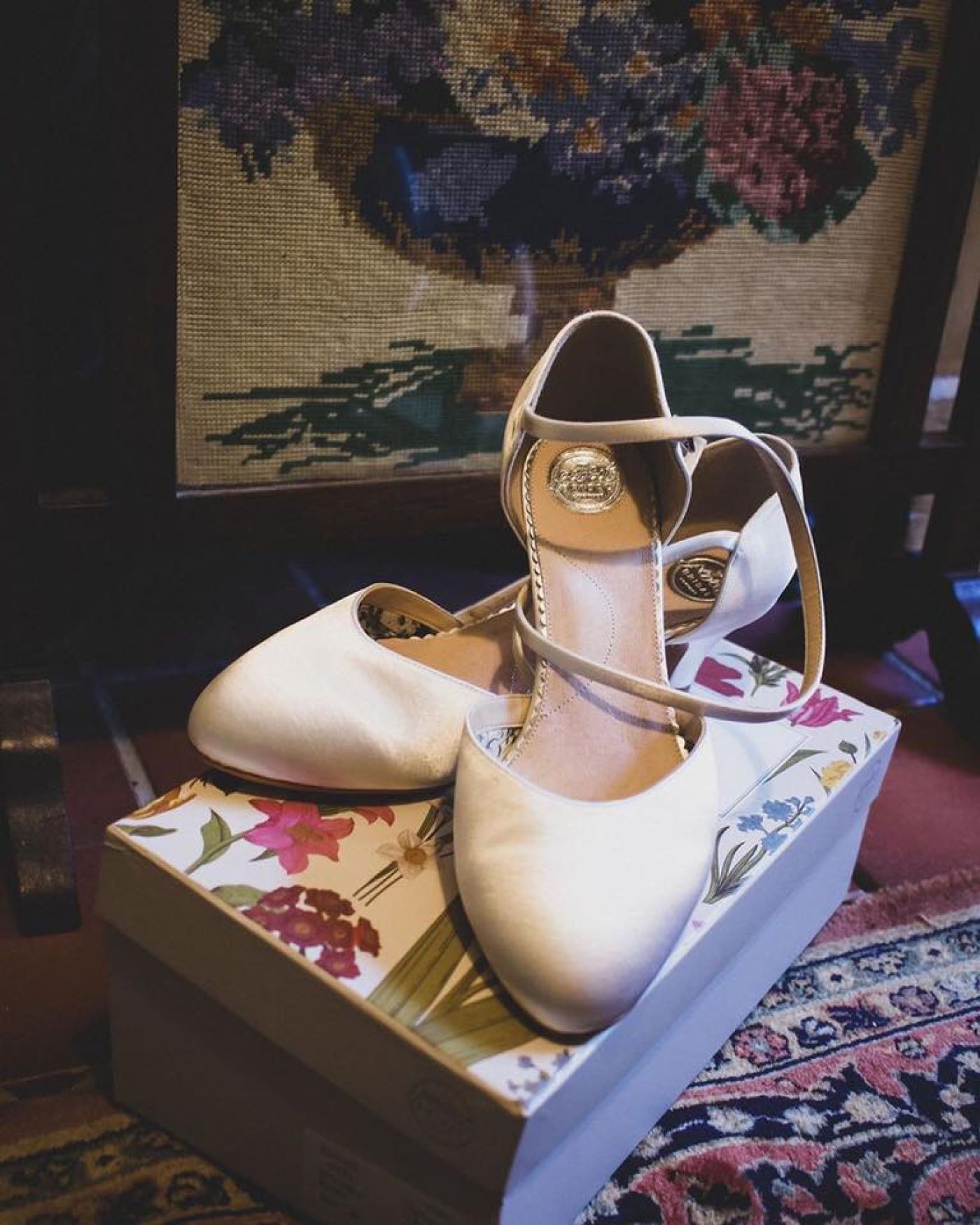 Emily ha indossato le Renate Wide Fit Dyeable Ivory Satin Low Heel Courts di Perfect Bridal.
