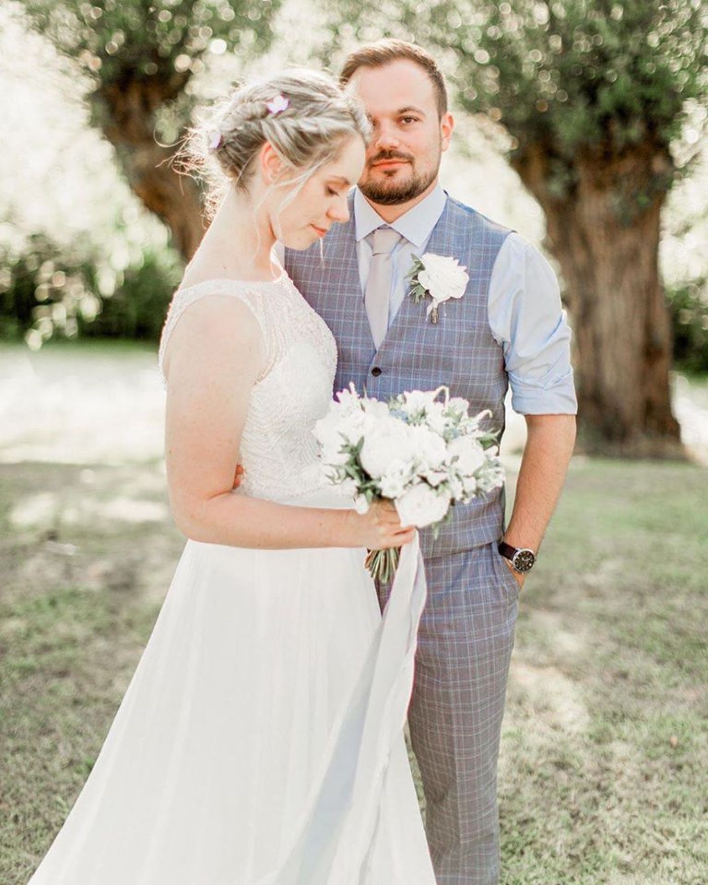 Hollie ha indossato il velo Barbados a doppia fila con bordo in raso di Joyce Jackson.