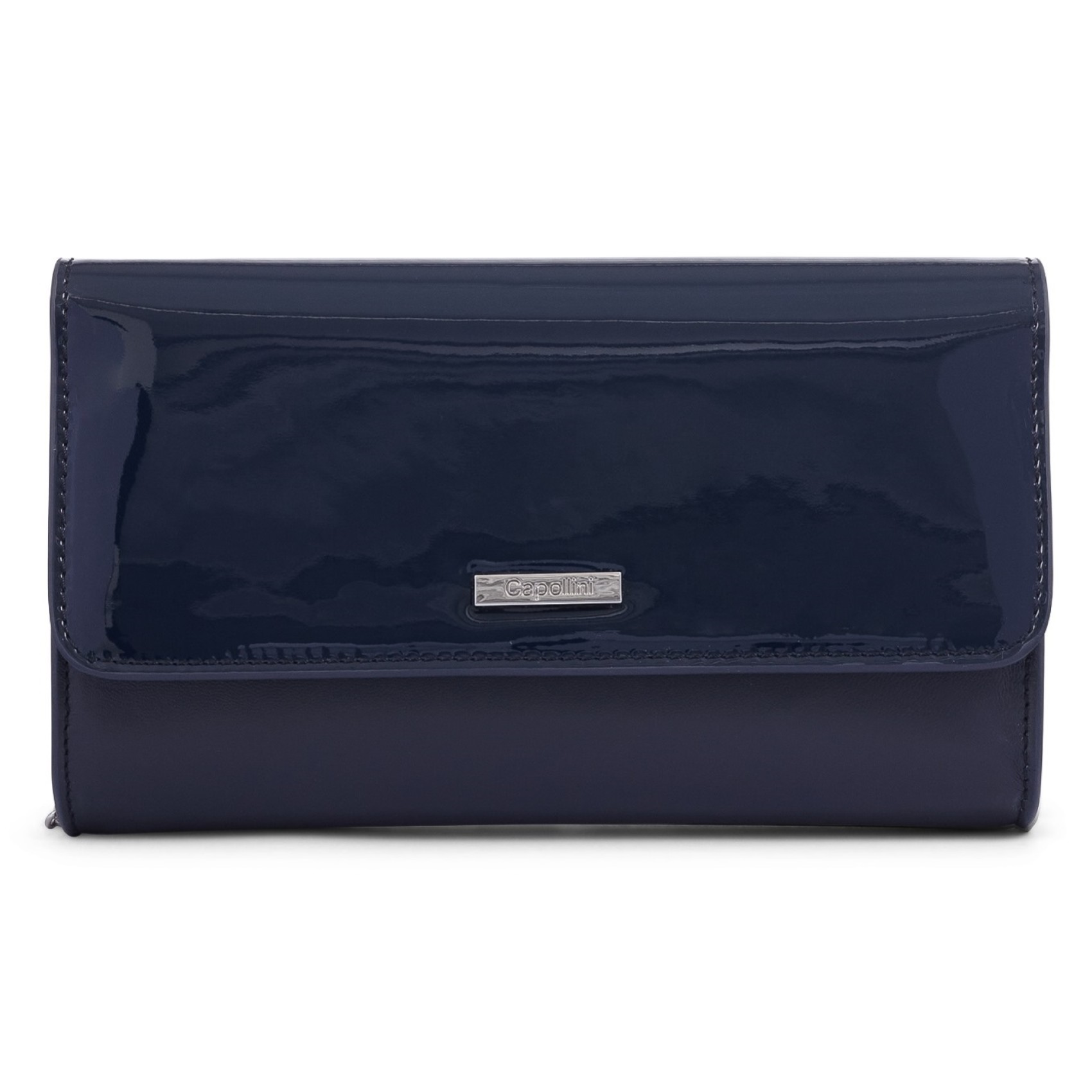 Realizzata a mano in pelle blu scuro, questa borsa senza tempo è dotata di una morbida chiusura magnetica, splendidamente foderata con un'ampia tasca a marsupio con zip e una tasca aperta all'interno. Da portare come una tradizionale pochette o da utilizzare con la lunga catena a tracolla staccabile per indossarla a mani libere. Rifinita con il marchio di approvazione Capollini.