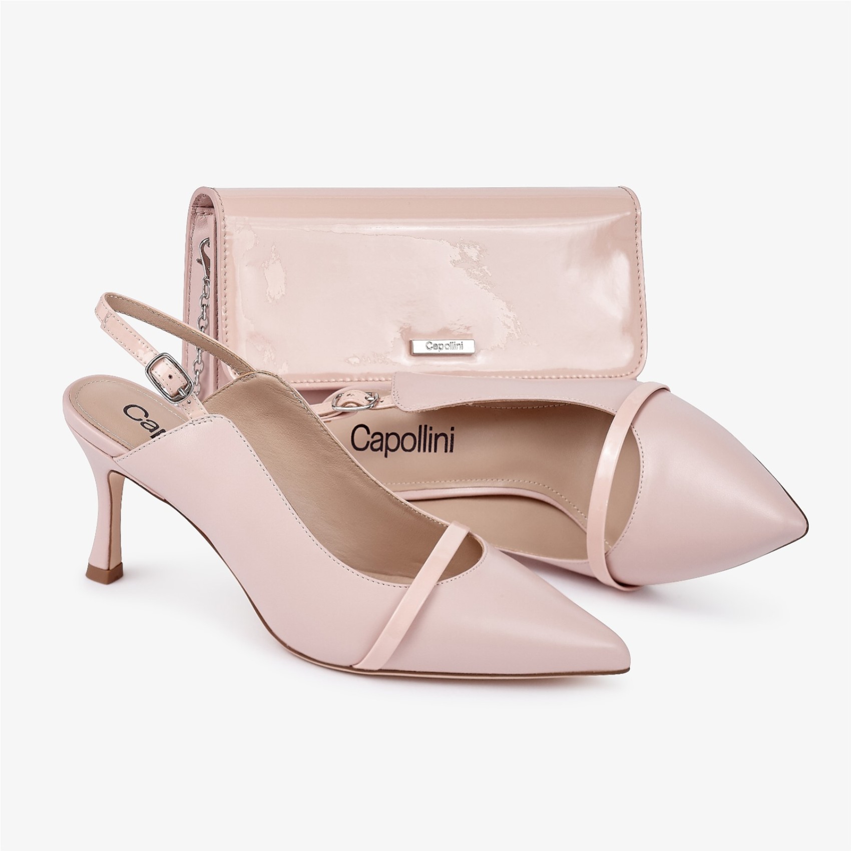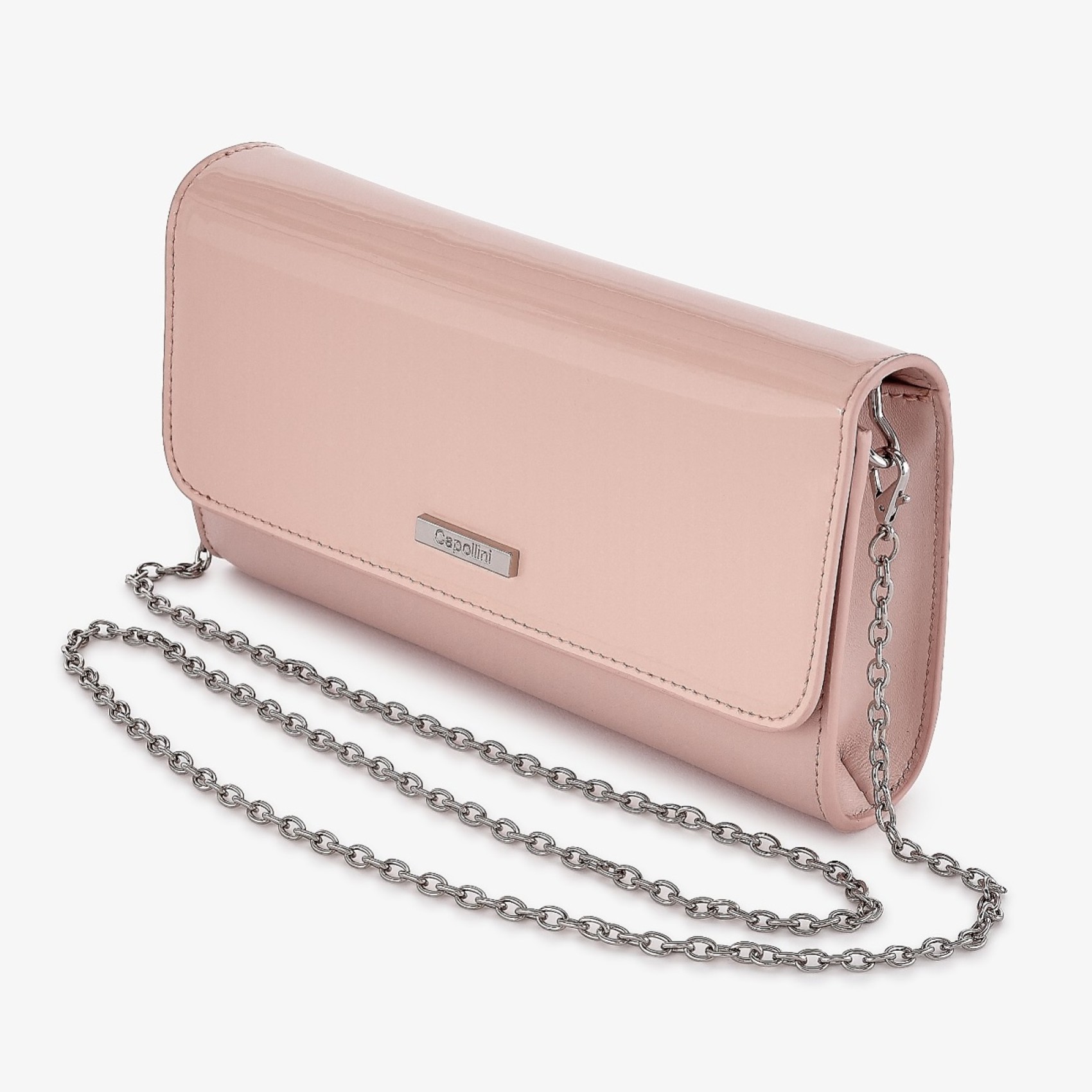 Realizzata a mano in morbida pelle rosa, questa borsa senza tempo è dotata di una morbida chiusura magnetica, splendidamente foderata con un'ampia tasca a marsupio con zip e una tasca aperta all'interno. Da portare come una tradizionale pochette o da utilizzare con la lunga catena a tracolla staccabile per indossarla a mani libere. Rifinita con il marchio di approvazione Capollini.