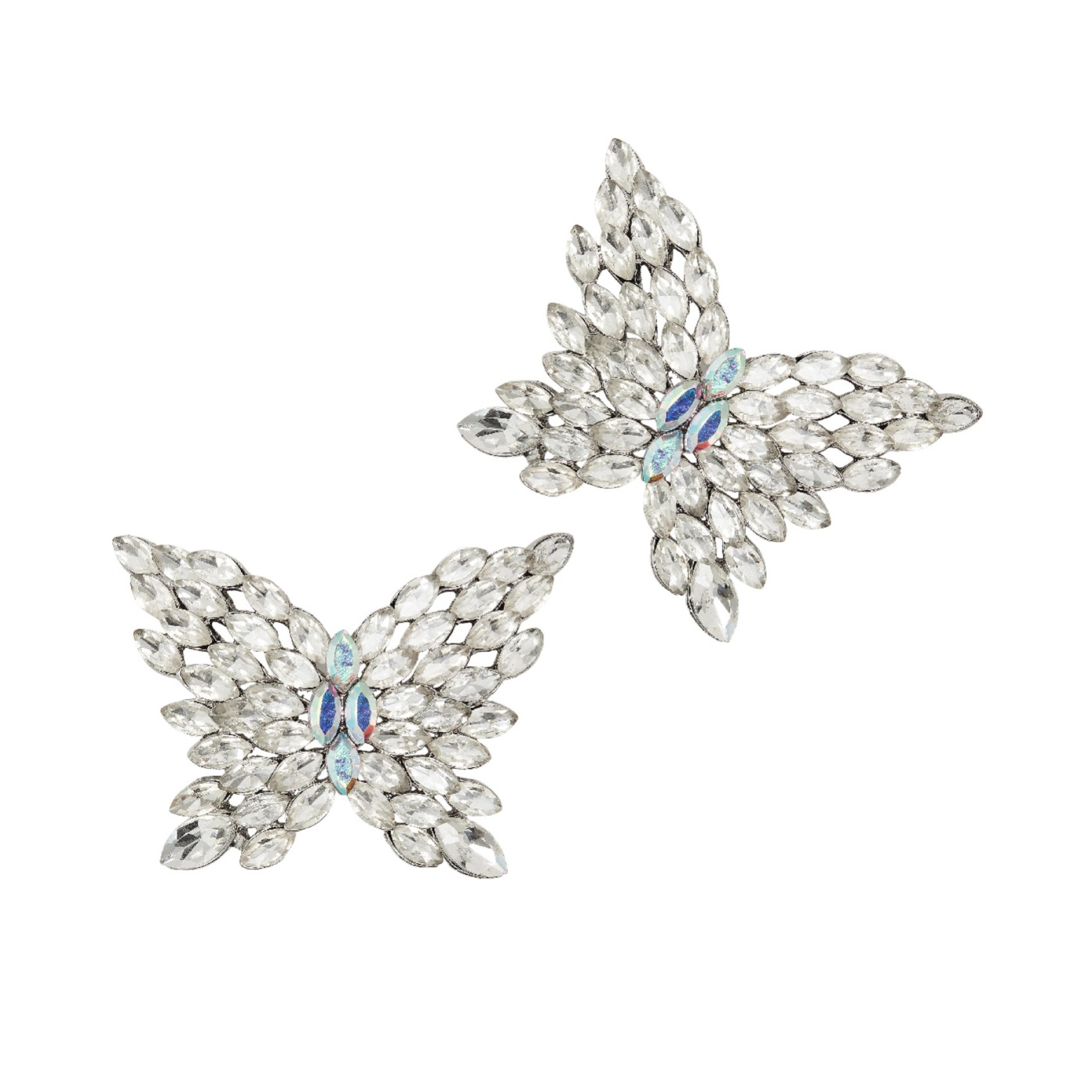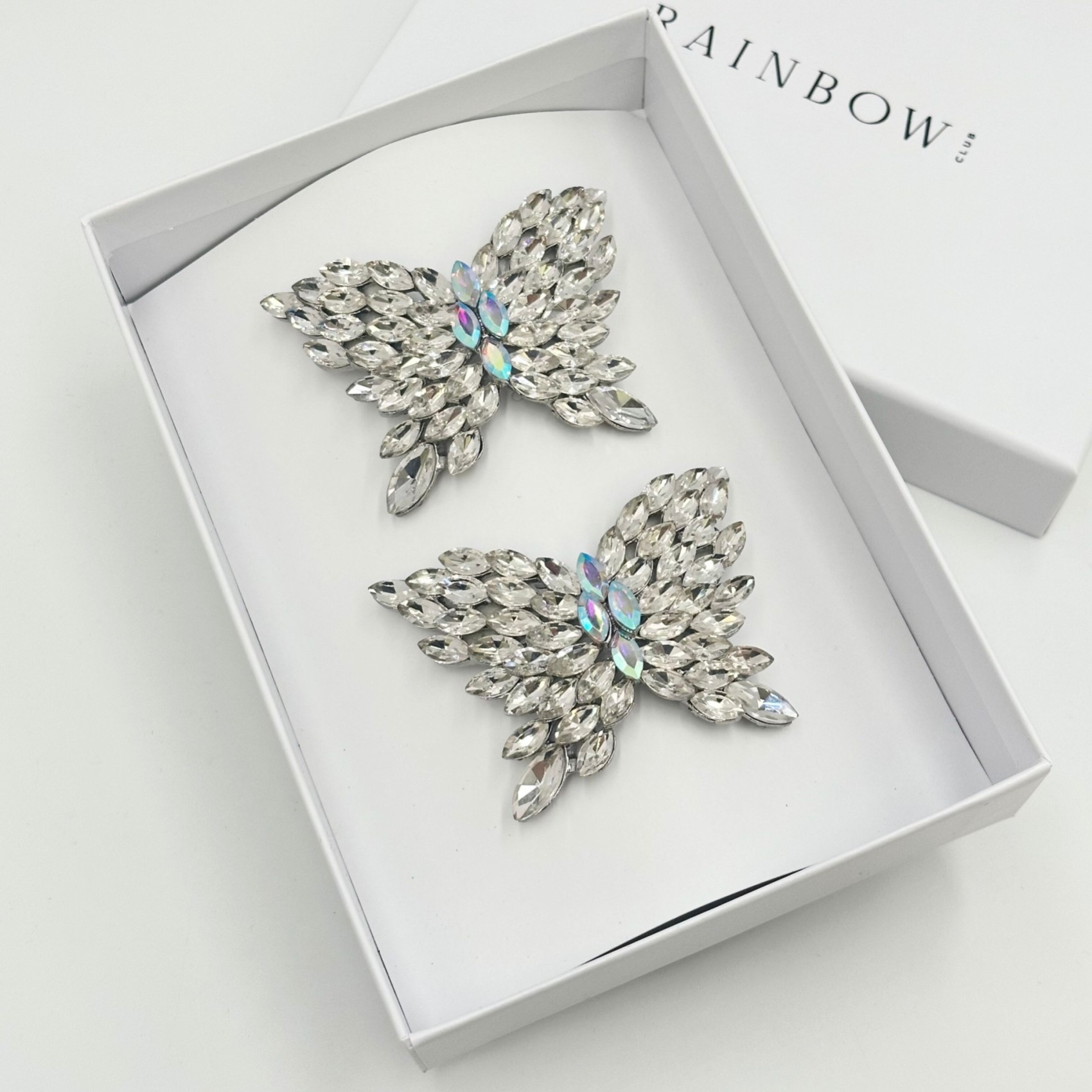 Nuovo e giocoso fermascarpe della nostra collezione di accessori da sposa, il Cleo è perfetto per le amanti delle farfalle. Realizzati con cristalli trasparenti a forma di farfalla, questi graziosi fermascarpe hanno un centro di cristalli iridescenti ed eleveranno immediatamente le scarpe da sposa più semplici. È un grazioso accessorio da sposa che funzionerà per il grande giorno e oltre. Assicuratevi di prenderli per il vostro matrimonio.