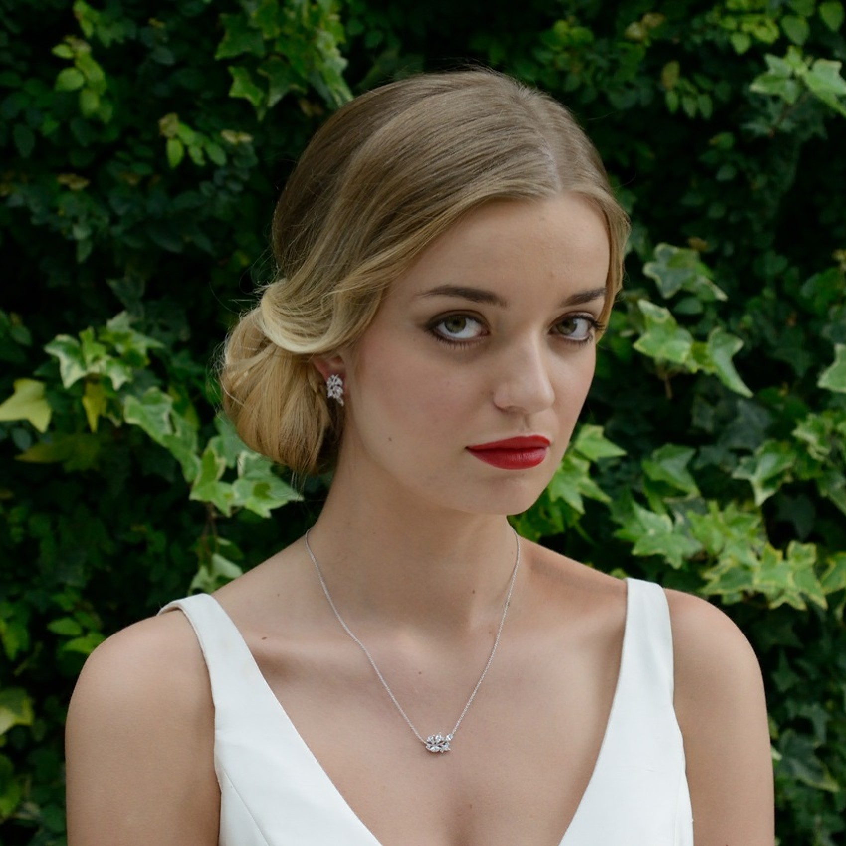 Una scintillante fronda di cristalli marquise e brillanti che cattura la luce è la più bella collana con ciondolo. Ci piace la forma moderna di questo pezzo e le sue dimensioni ridotte lo rendono adatto e versatile sia per le spose che per le damigelle.