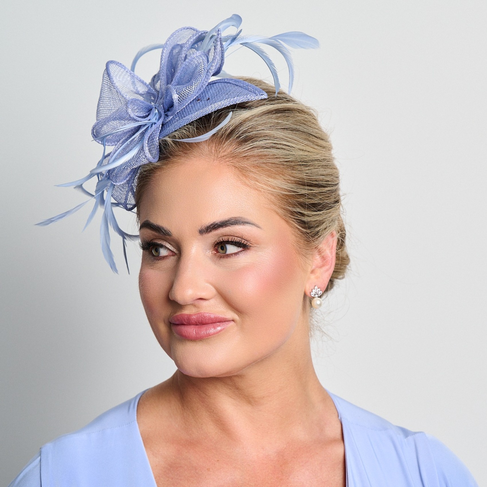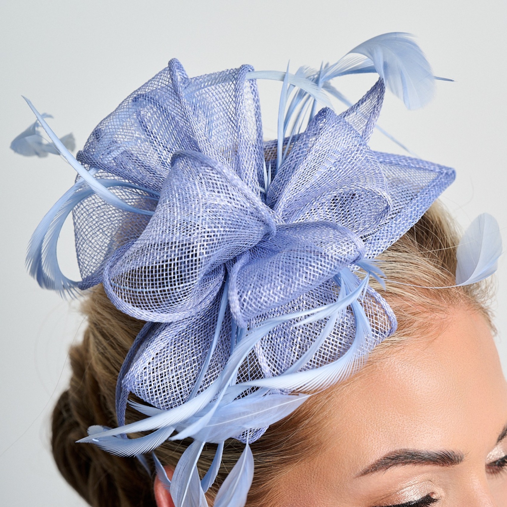 Attraente fascinator da sposa color pervinca, realizzato con passanti in sinamay trasparente e arricchito da morbide piume in un grazioso design laterale. Questo fascinator femminile in sinamay è collegato a un cerchietto discreto e comodo da indossare. Dai matrimoni alle corse, questo elegante fascinator color pervinca è perfetto per ogni occasione speciale. Una scelta sofisticata per una madre della sposa, uno sposo o un'invitata a un matrimonio, questo fascinator aggiungerà il tocco finale perfetto al vostro abbigliamento.