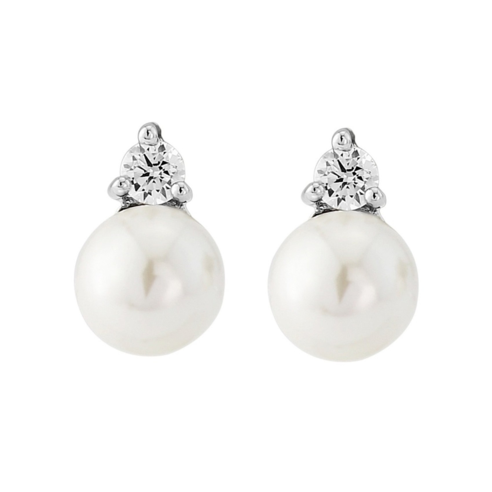 Delicati orecchini con perla dal design semplice ed elegante, con un singolo cristallo cubico scintillante e una perla avorio simulata. Perfetti per le spose o le damigelle.