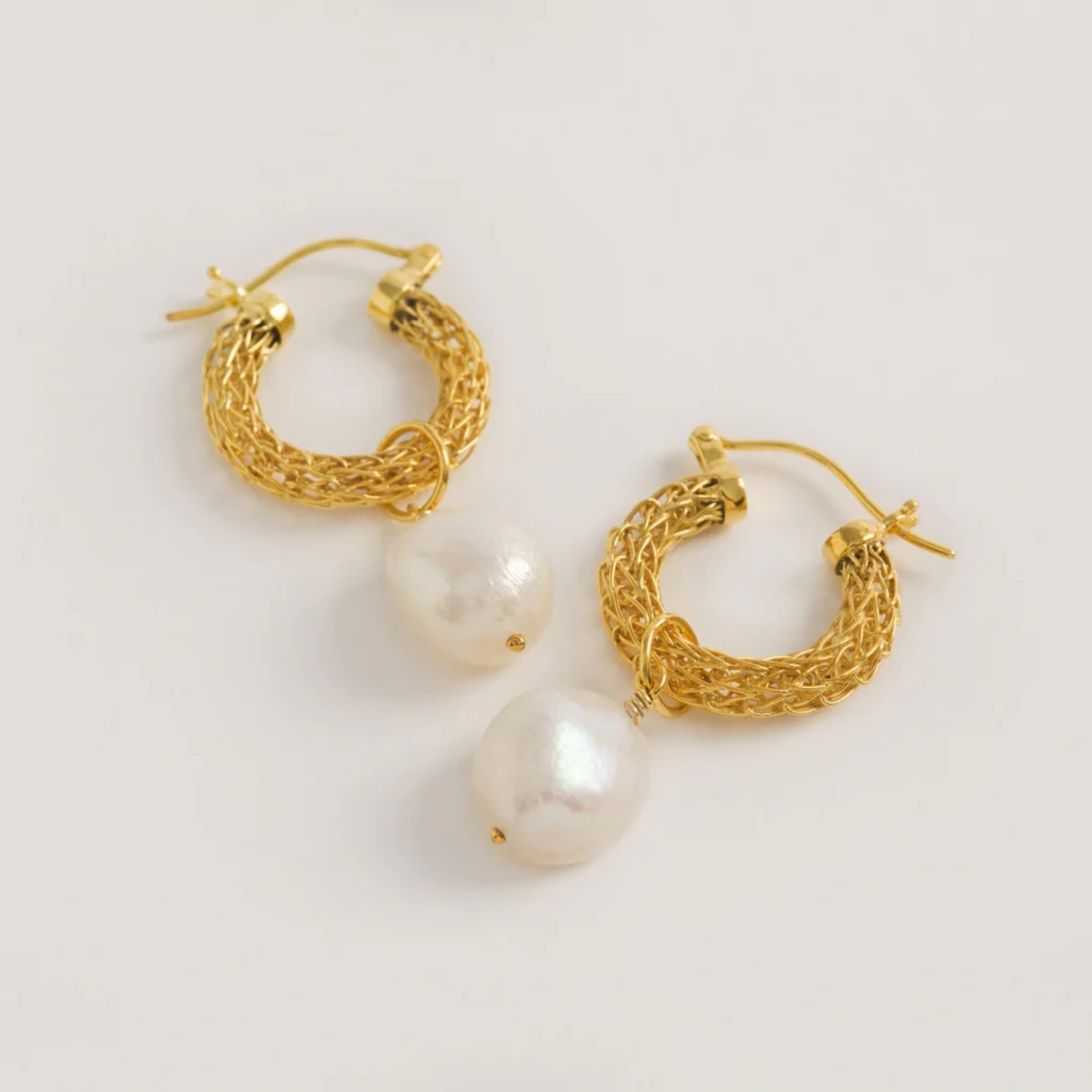 Freya Rosegli squisiti mini cerchi intrecciati a mano all'uncinetto con perle barocche sono un paio di orecchini perfetti da giorno a sera. Realizzati a mano in vermeil d'oro 22ct secondo la tradizione dell'Indonesia orientale, questi orecchini di complessa realizzazione sono opere d'arte da indossare. Caratterizzati da perle barocche iridescenti, la bellezza di questi pendenti di gemme uniche è che non esistono due coppie uguali. Ogni perla barocca è formata naturalmente e possiede un fascino individuale.