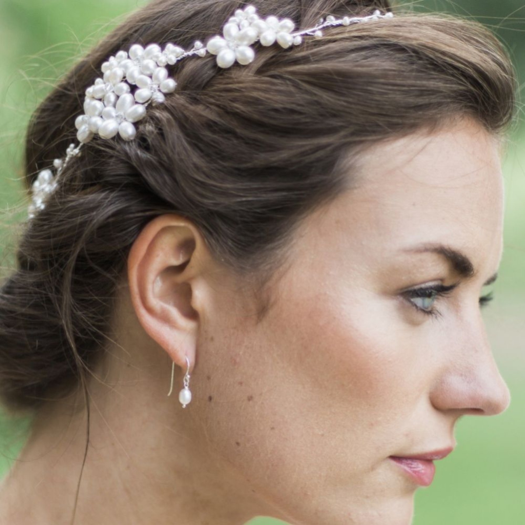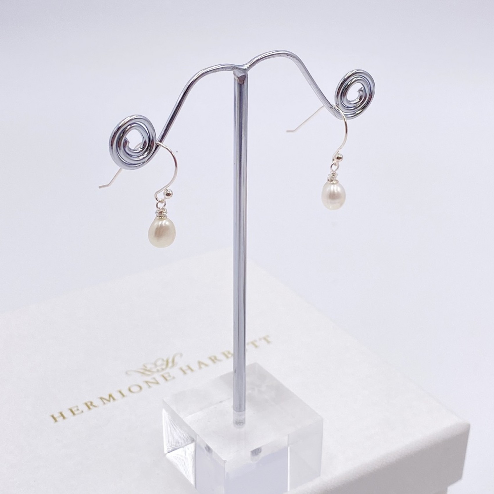 Orecchini a goccia con perle classiche, splendidamente sobri, in argento. Questa coppia di orecchini è un regalo splendido sia per le spose che per le damigelle d'onore. Una scelta semplice ed elegante.