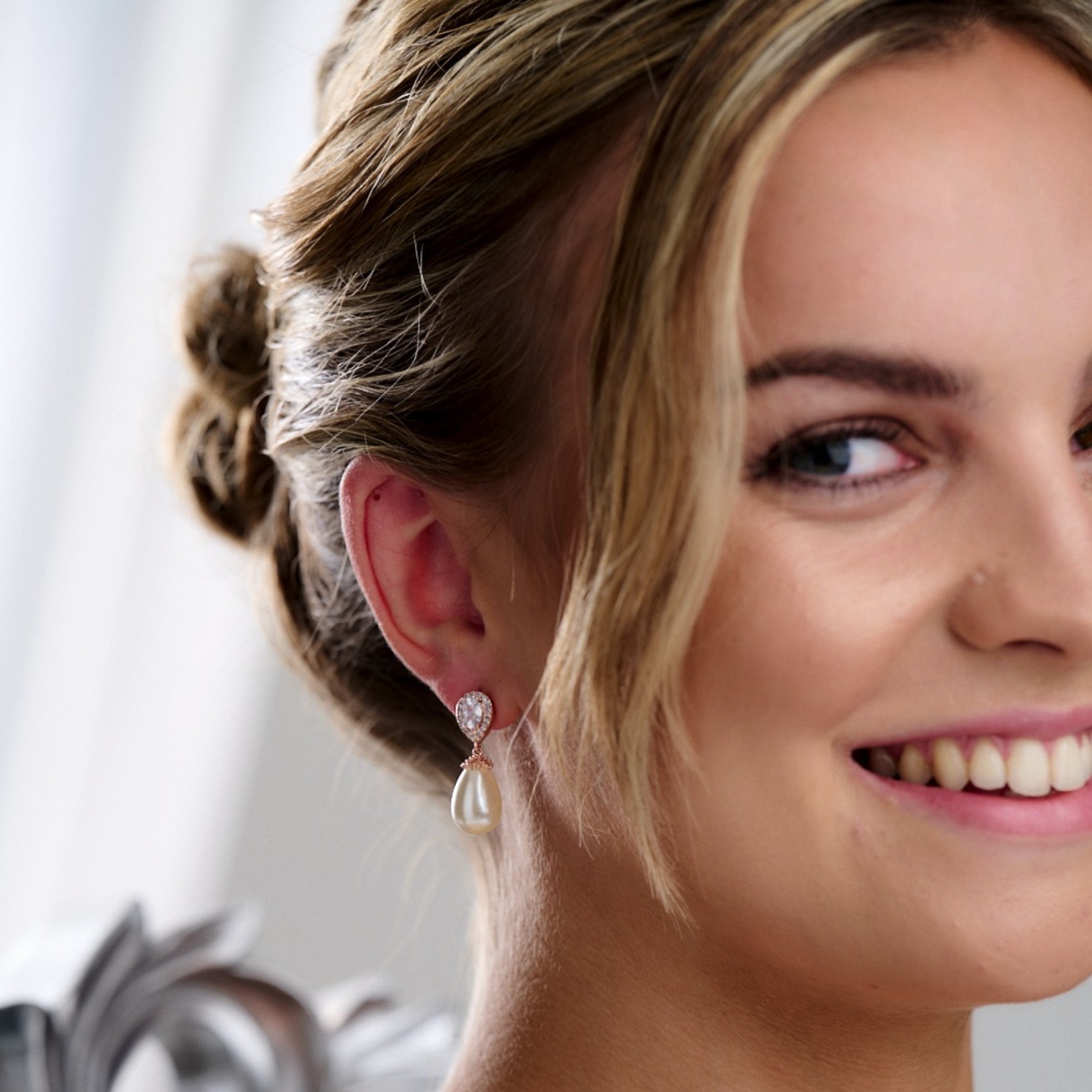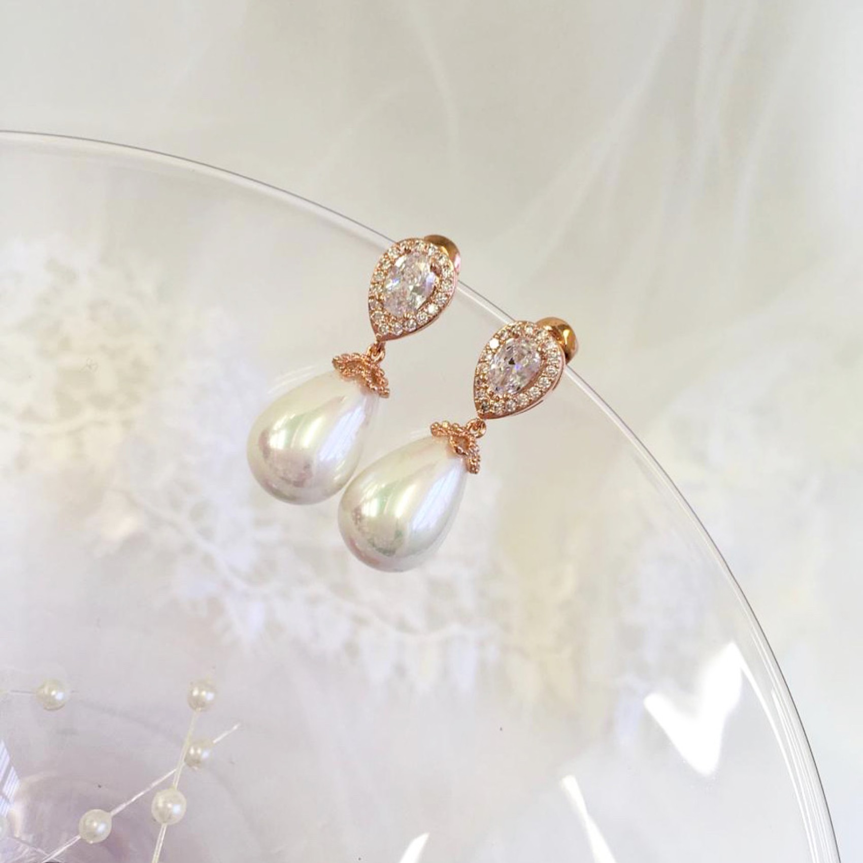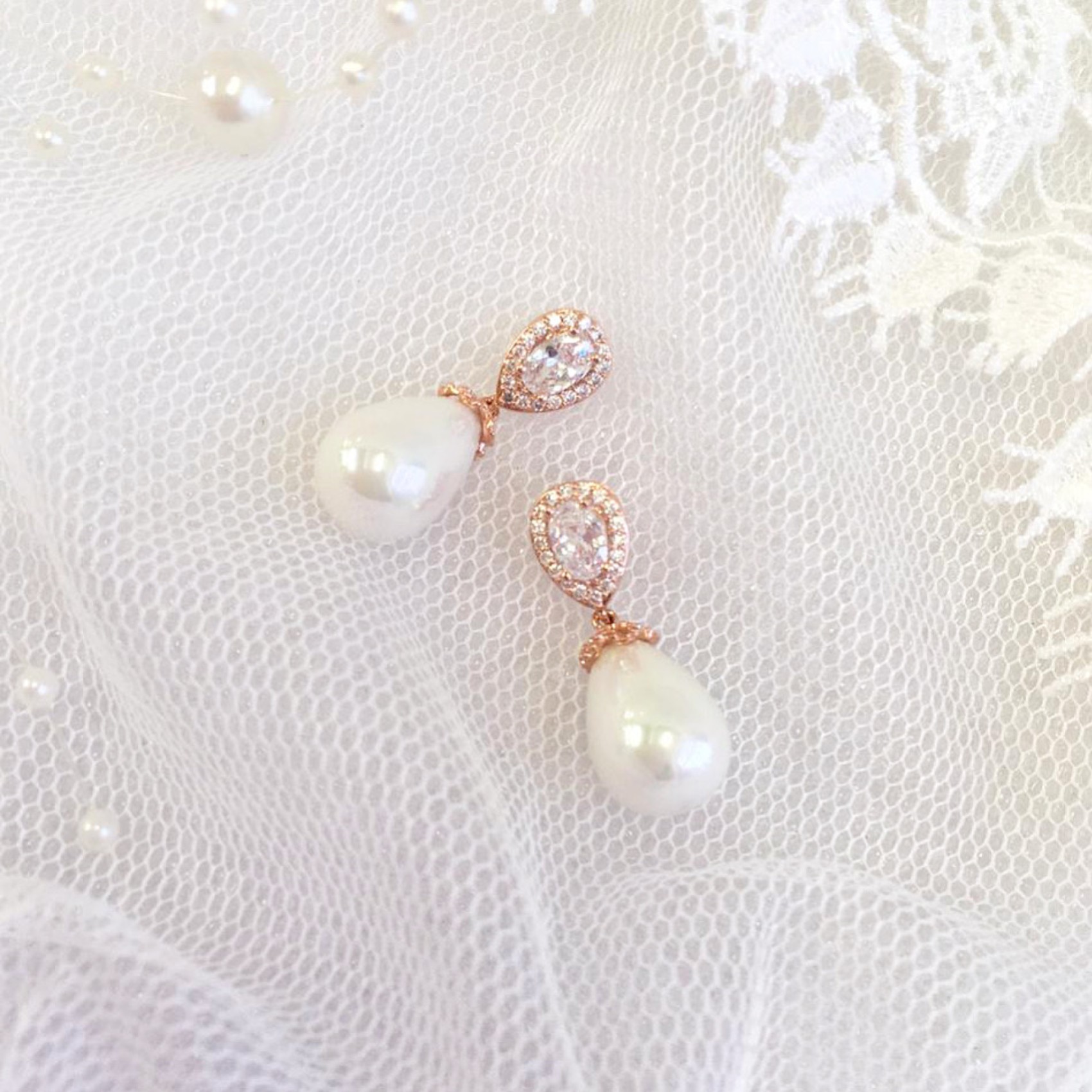 Orecchini di perle in oro rosa dallo stile chic ed elegante, con un design senza tempo realizzato con cristalli chiari di zirconia cubica e una scintillante perla a goccia color avorio. Questi splendidi orecchini da sposa sono perfetti sia per le spose che per le damigelle.