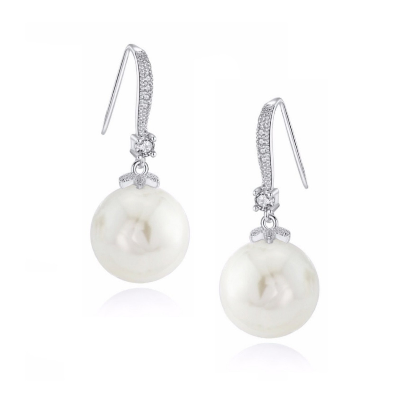 Semplici ed eleganti orecchini da sposa con perla, caratterizzati da una singola linea di cristalli di zirconia cubica incastonati che sospendono una goccia di perla avorio scintillante. Questo paio di orecchini è un regalo perfetto per le spose e le damigelle d'onore.