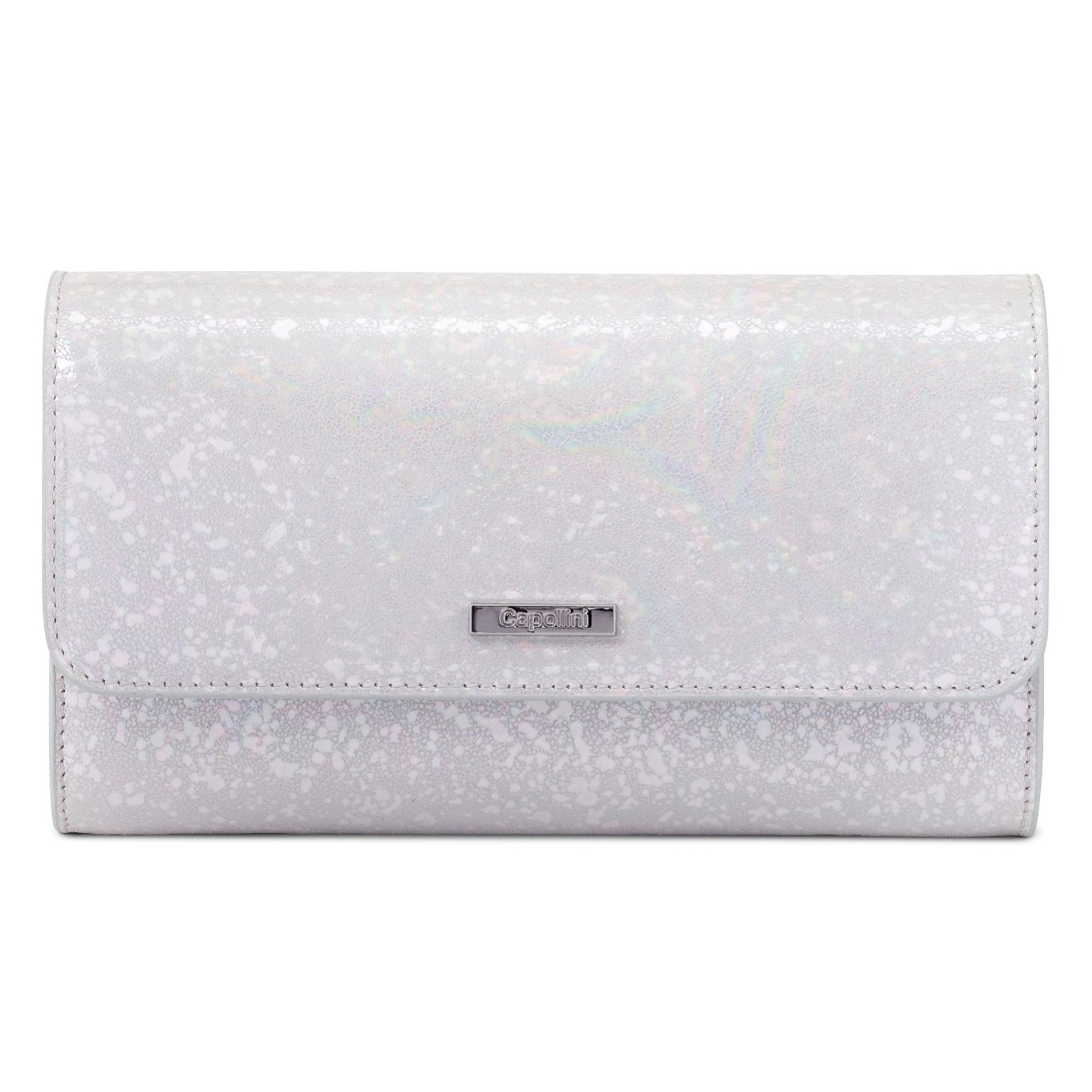 Realizzata a mano in pelle scintillante e perlata, questa borsa senza tempo è dotata di una morbida chiusura magnetica, splendidamente foderata con un'ampia tasca a marsupio con zip e una tasca aperta all'interno. Da portare come una tradizionale pochette o da utilizzare con la lunga catena a tracolla staccabile per indossarla a mani libere. Rifinita con il marchio di approvazione Capollini.
