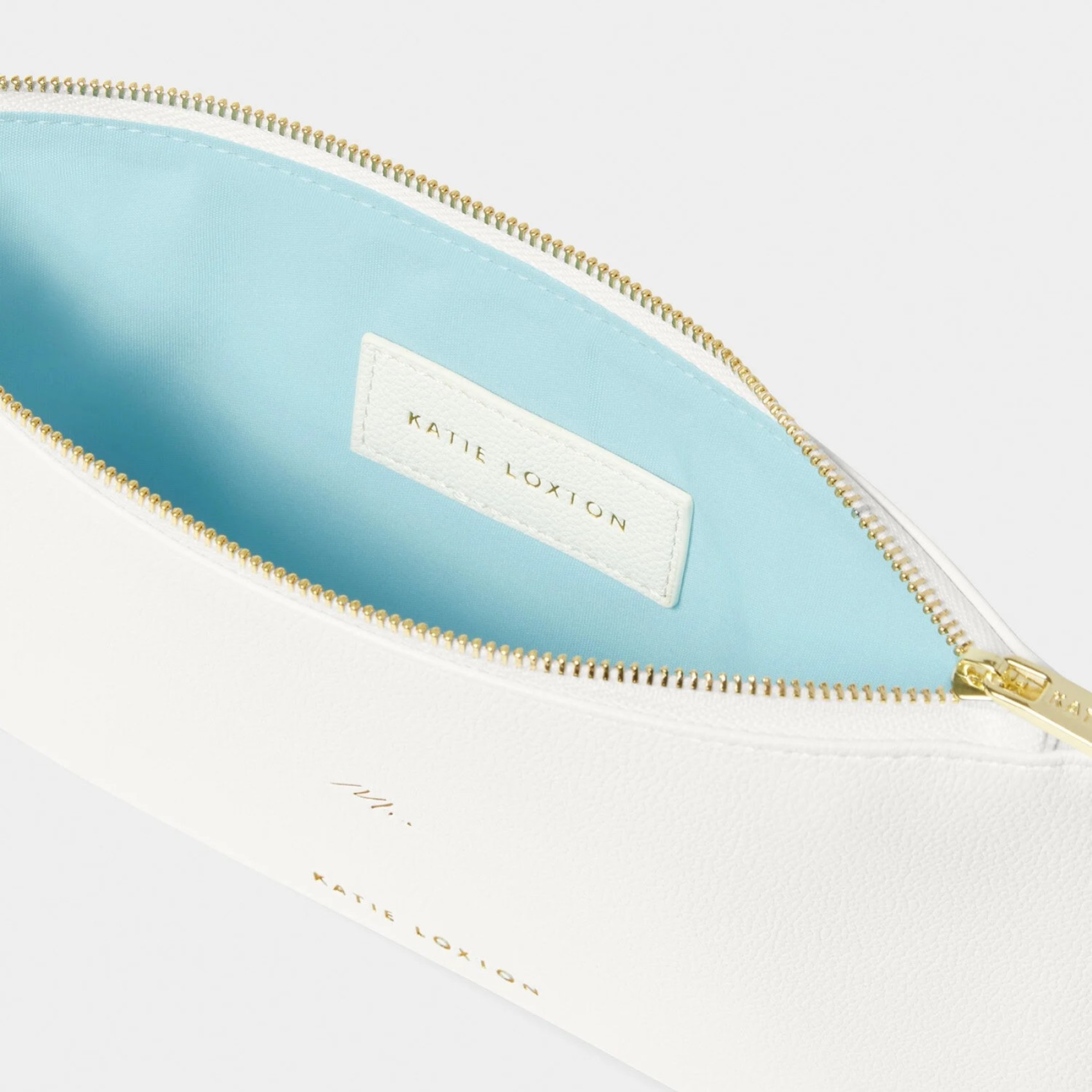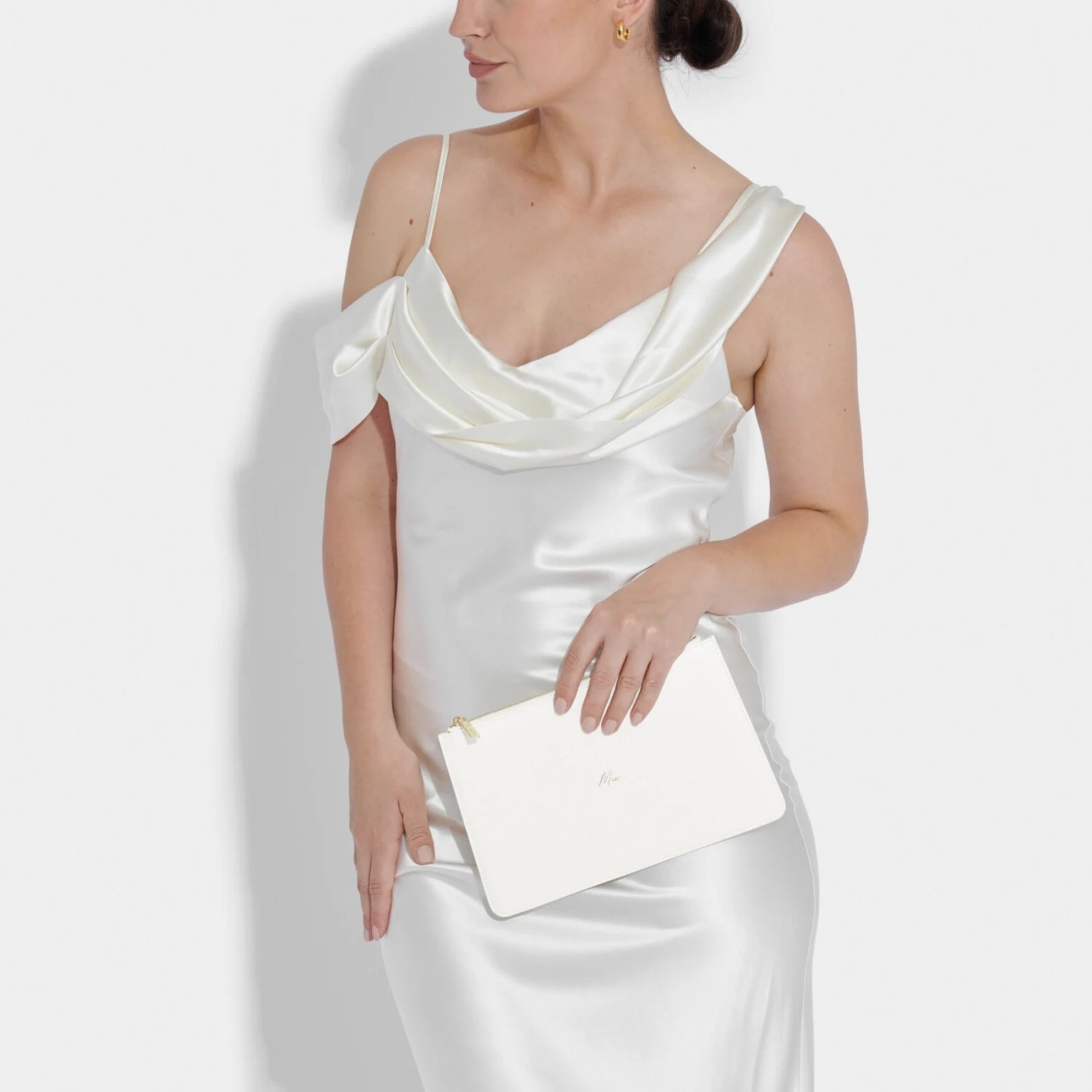 Katie Loxtonla nuovissima Bridal Sentiment Pouch bianca è l'accessorio ideale per le celebrazioni del grande giorno. Realizzato in morbida pelle vegana bianca e impreziosito dalla scritta "Mrs" in oro. La chiusura con zip assicura che gli oggetti essenziali siano al sicuro, mentre il design leggero garantisce un trasporto senza sforzo.