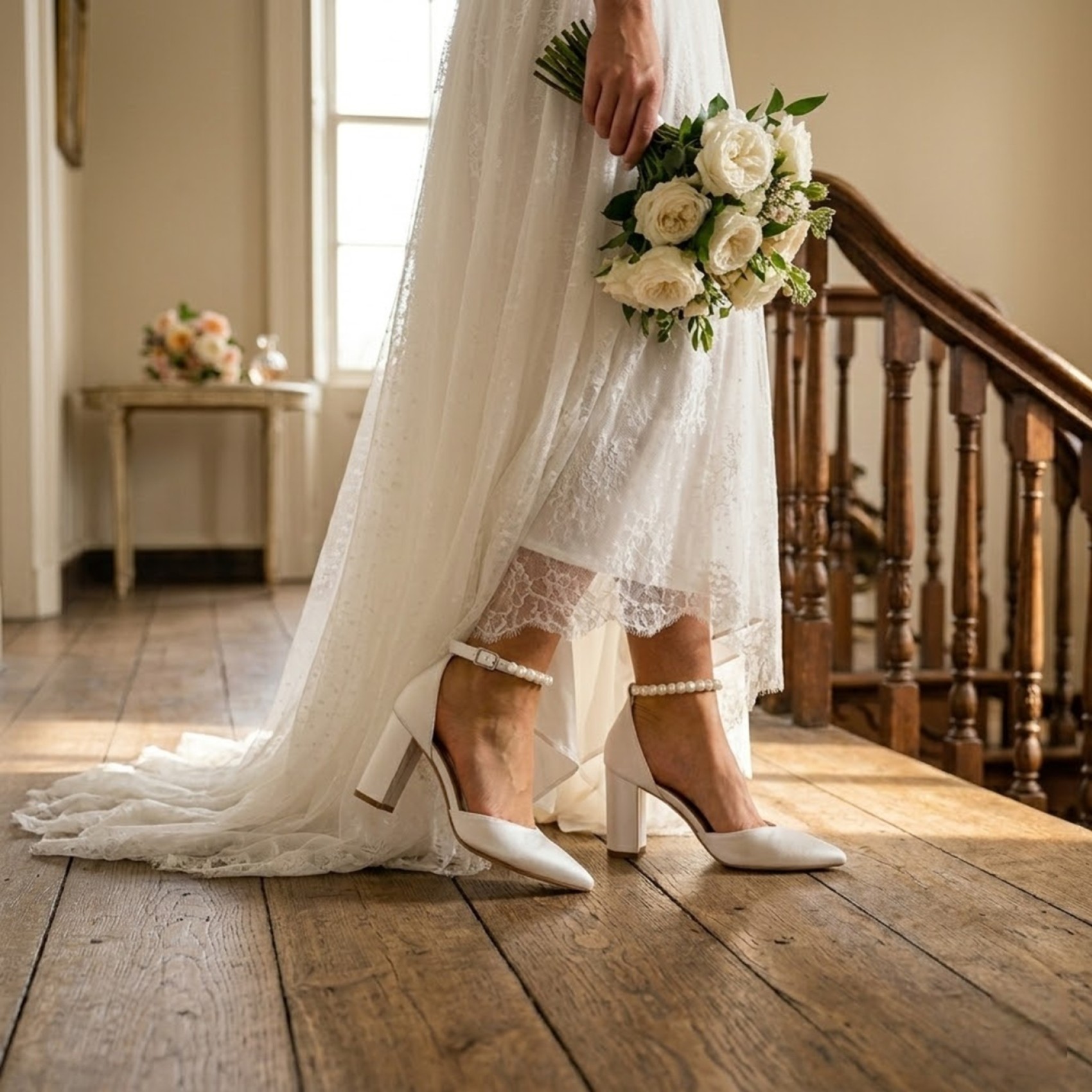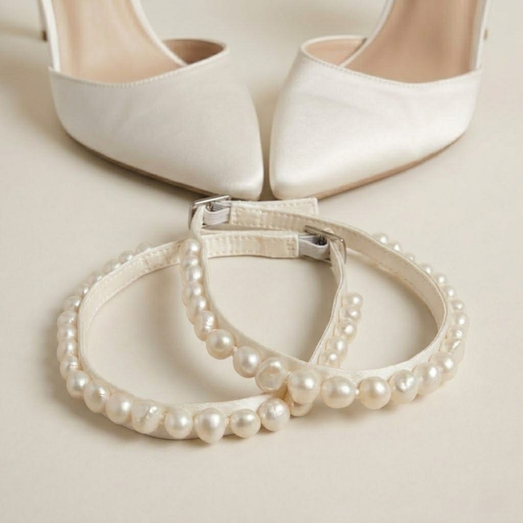 These are beautiful in all ways: the shoe is gorgeous, strap is elegant, and even the box is lovely. When I ordered them, the image shows the pearls organised around the strap at different levels, but they arrived in a more linear pattern. I did query this, but it turns out it’s a design update. I’m still very happy with them, but would have liked to have known when making my decision so thought this may help another person. I can’t wait to wear them! They already feel comfortable, come with clear care instructions, and are very special.