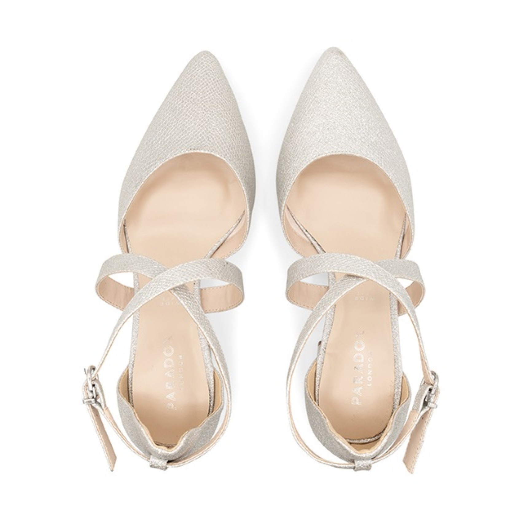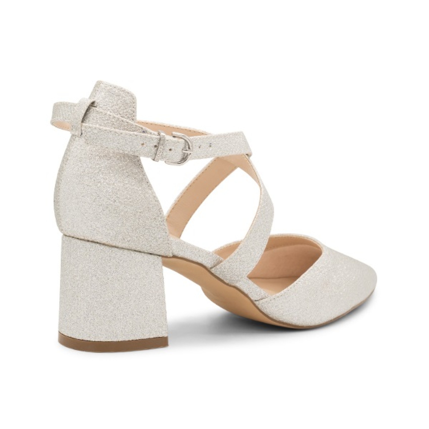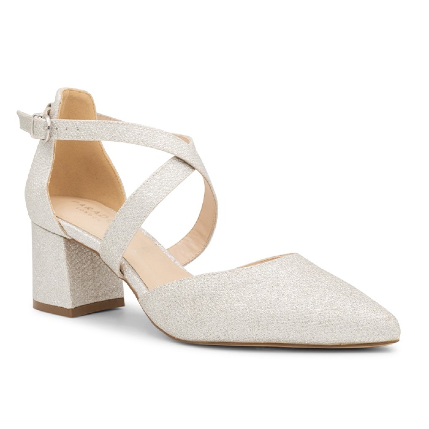 Un'elegante scarpa da tribunale in due parti dalla calzata ampia, realizzata con scintillanti glitter argentati, Farrah presenta un'elegante punta a punta, un tacco basso a blocco e lusinghieri cinturini incrociati. Queste scarpe sono perfette e comode per una damigella d'onore, un'invitata al matrimonio o una madre della sposa. Sono anche splendide scarpe da ballo!