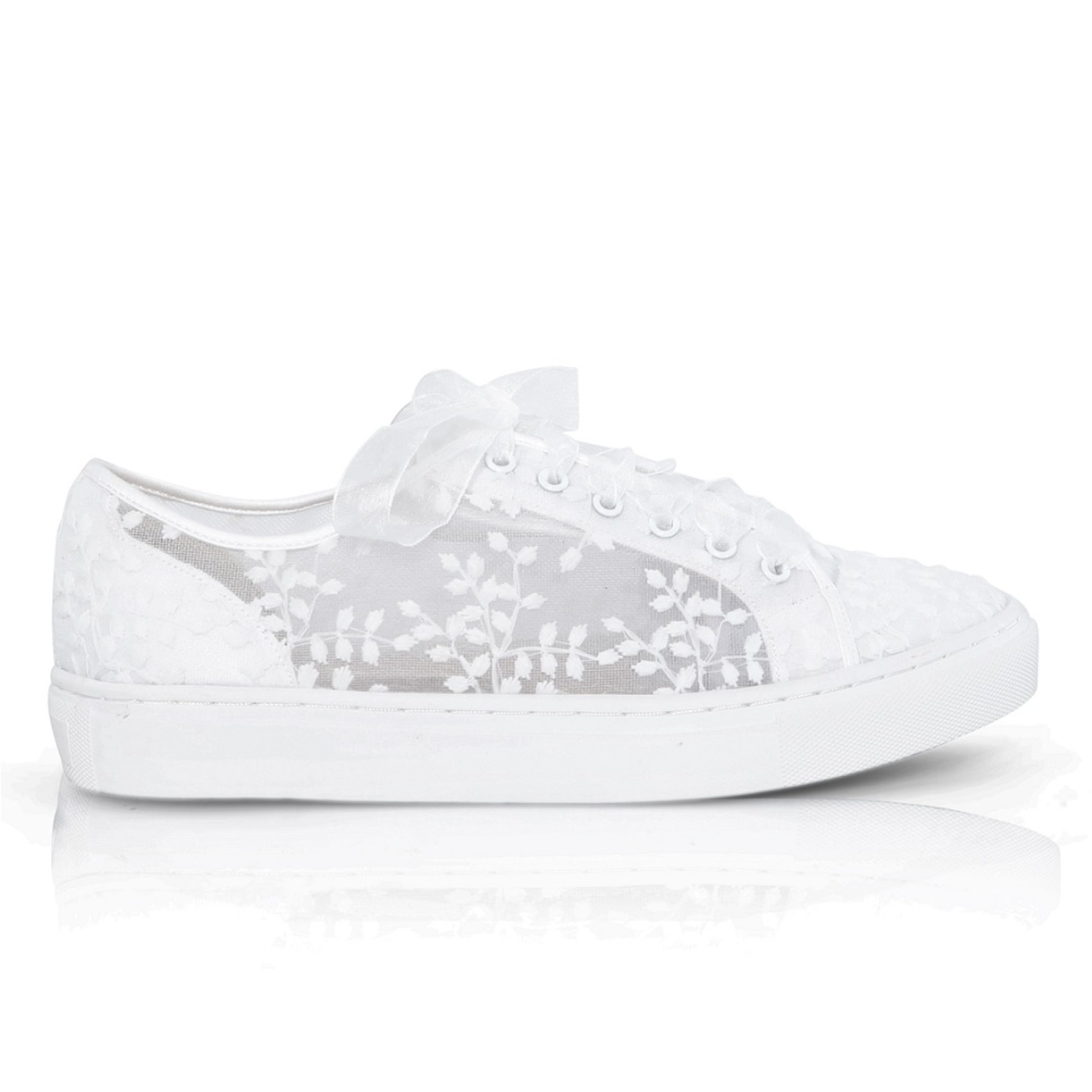 Comfort super morbido e ammortizzato. Oakley è una nuova bellissima sneaker da sposa realizzata a mano in pizzo avorio sfoderato con contrafforte e punta in raso avorio, rifinita con lacci in organza trasparente. Il delicato pizzo ricamato su un supporto in rete trasparente assicura che queste graziose sneaker si abbinino perfettamente a qualsiasi abito da sposa. Fodera e sottopiede imbottiti per il massimo comfort.