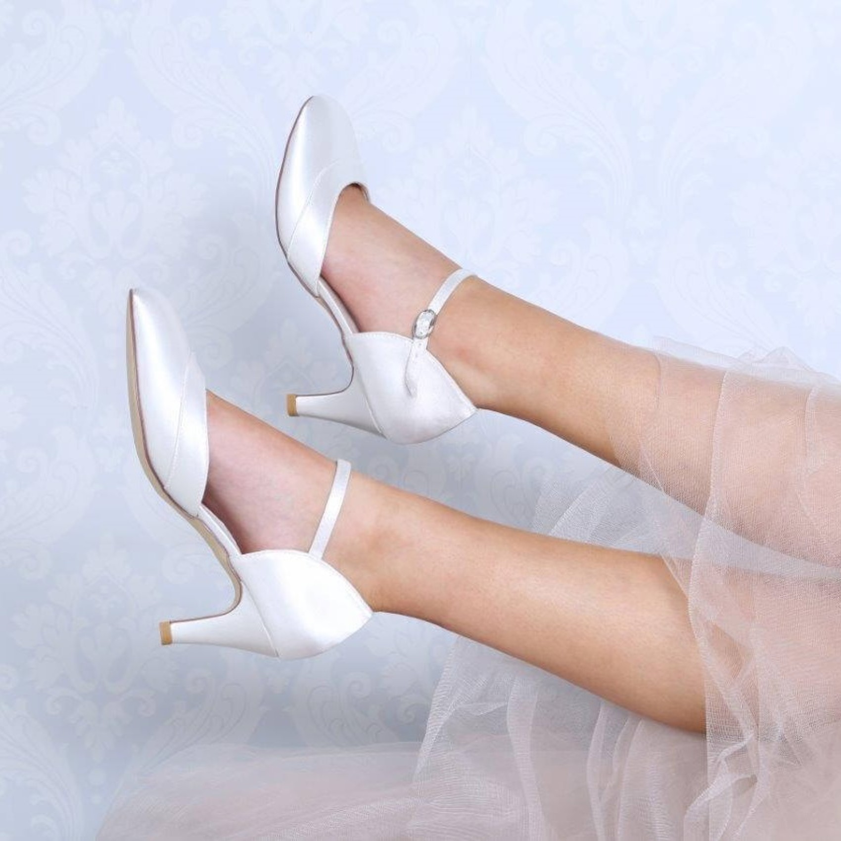 Belle e infinitamente comode, queste splendide scarpe da sposa in raso dalla calzata ampia sosterranno i vostri piedi per tutto il giorno. Fodera e soletta in pelle morbida e ammortizzata, punta e tallone completamente chiusi e cinturino regolabile alla caviglia per sentirsi sicure e fiduciose. Queste splendide scarpe da sposa larghe possono essere tinte in qualsiasi tonalità desiderata grazie al nostro servizio di tintura interno e sono perfette per le damigelle o per la madre della sposa. Disponibili anche in pizzo.