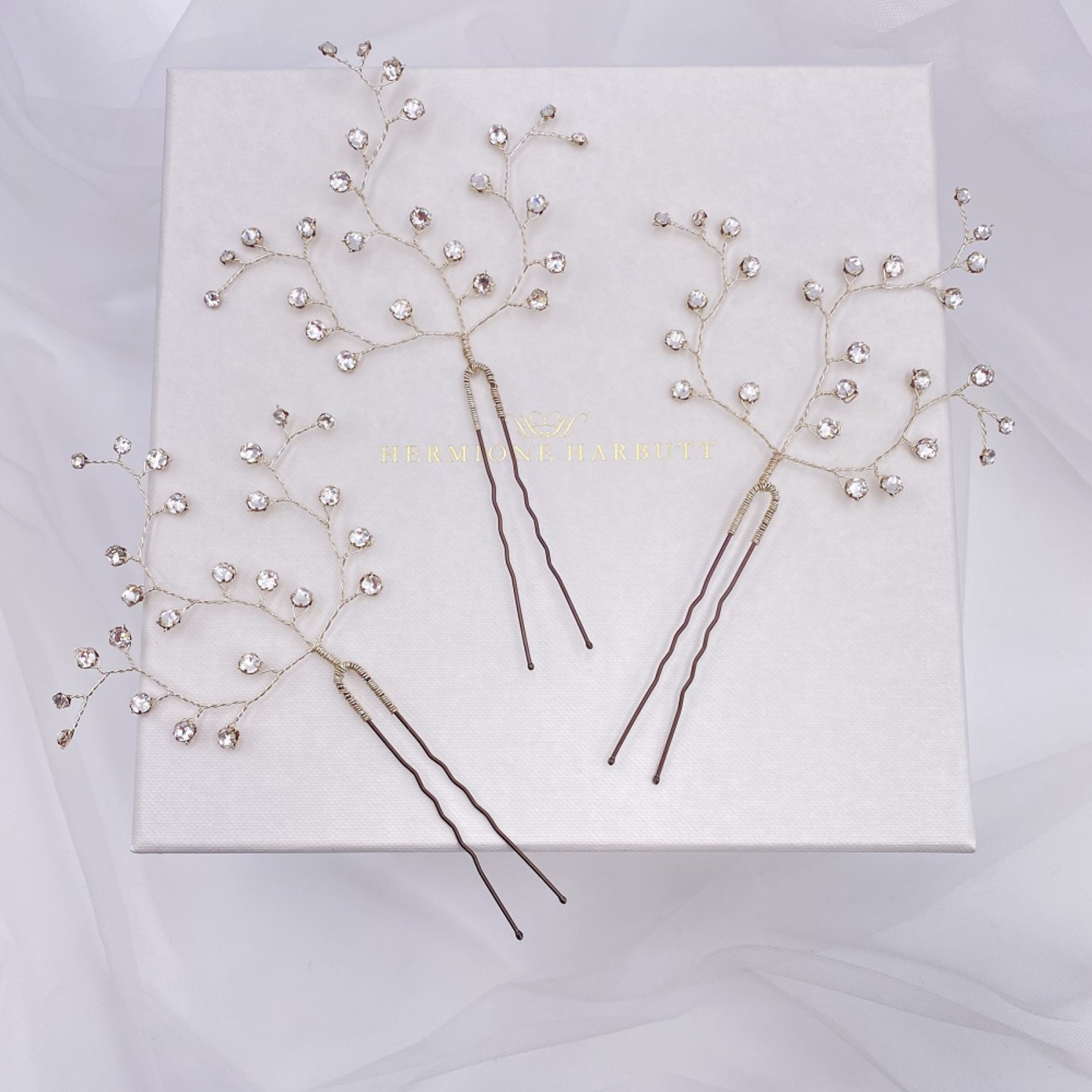 Hermione Harbutt Spille per capelli da sposa in cristallo Swarovski Dewdrop | DEWDROPHAIRPINS-HH