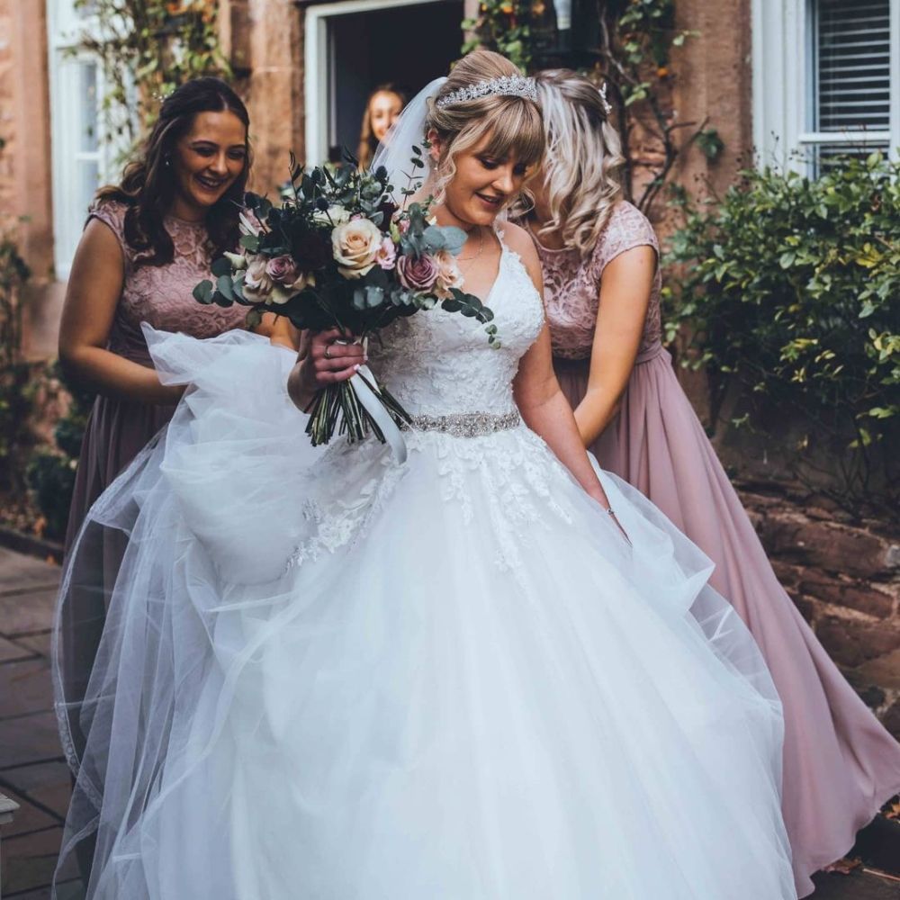 Aggiungete un fascino vintage al vostro giorno di nozze con la bellissima tiara Alexandra impreziosita da cristalli. Solitari di taglio brillante, pietre ovali e marquise e perle di cristallo scintillanti sono incastonate in un elaborato disegno di ispirazione vintage che si estende da un capo all'altro della tiara. Questo diadema nuziale è splendido se indossato con una pettinatura alta per mostrare gli splendidi dettagli laterali. Un diadema molto apprezzato dalla sposa principessa!