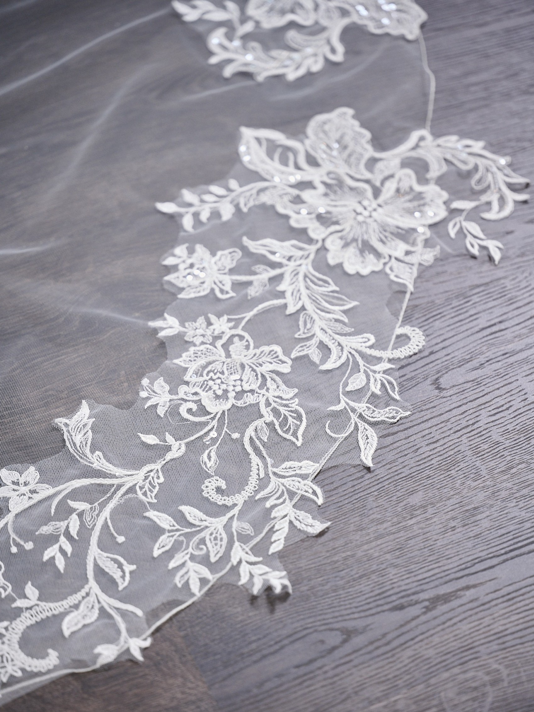 Belvedere Avorio Velo lungo a un piano con motivi floreali in pizzo | TLV8301