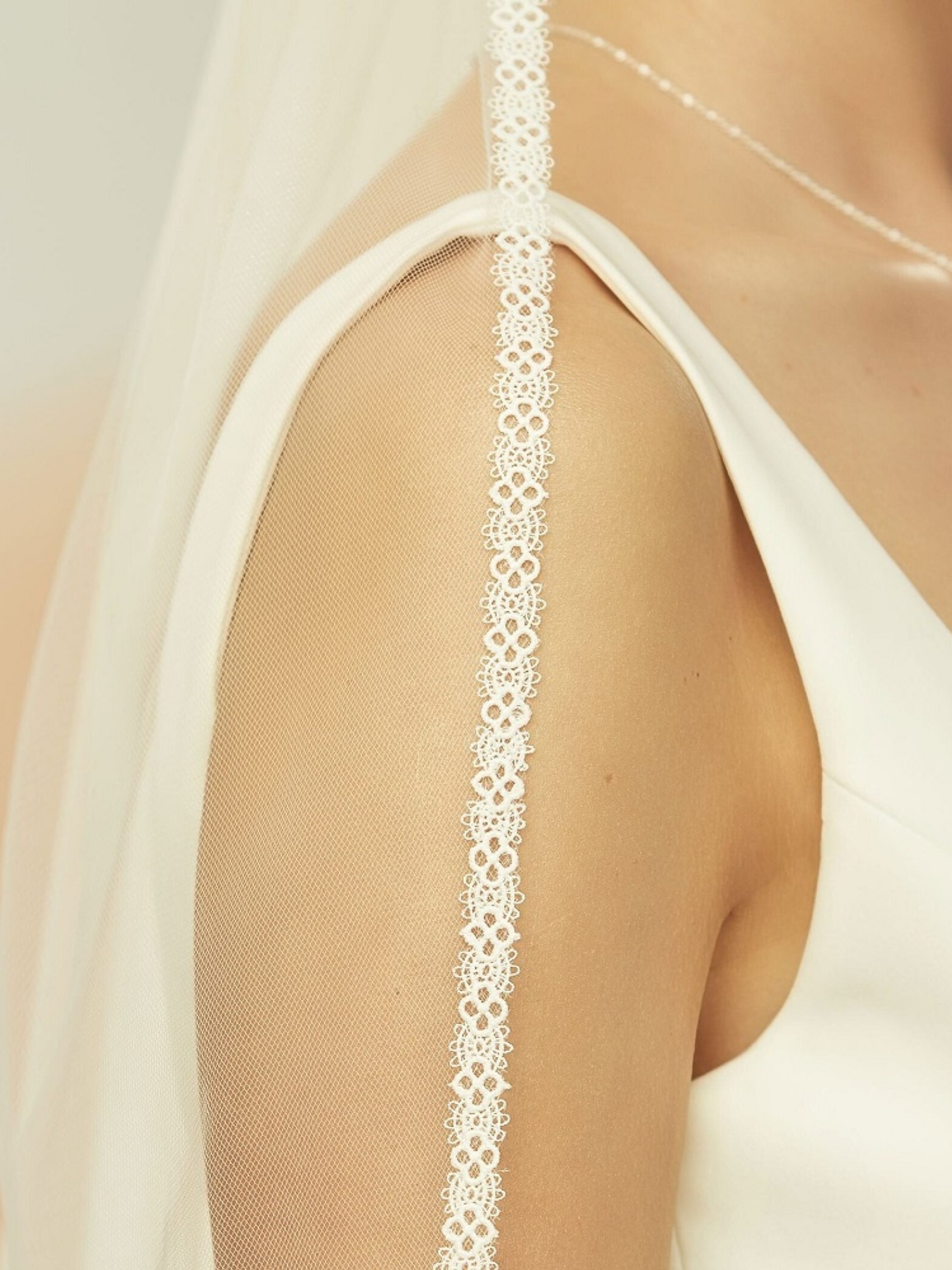 Velo bianco avorio a un piano con bordo stretto in pizzo S400 | S400