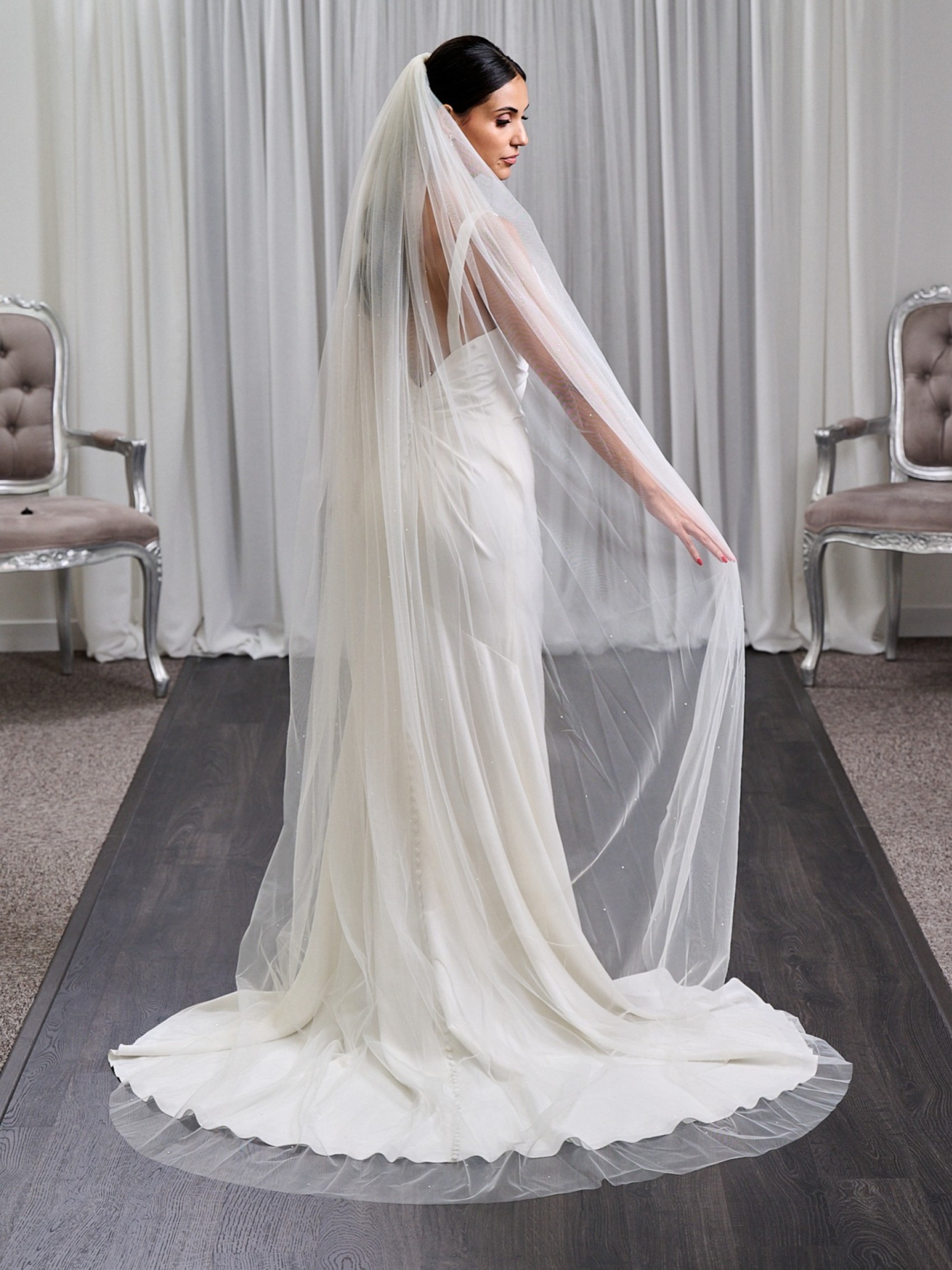 Chelsea Single Tier Italian Tulle Scattered Pearl Veil | LFV029
