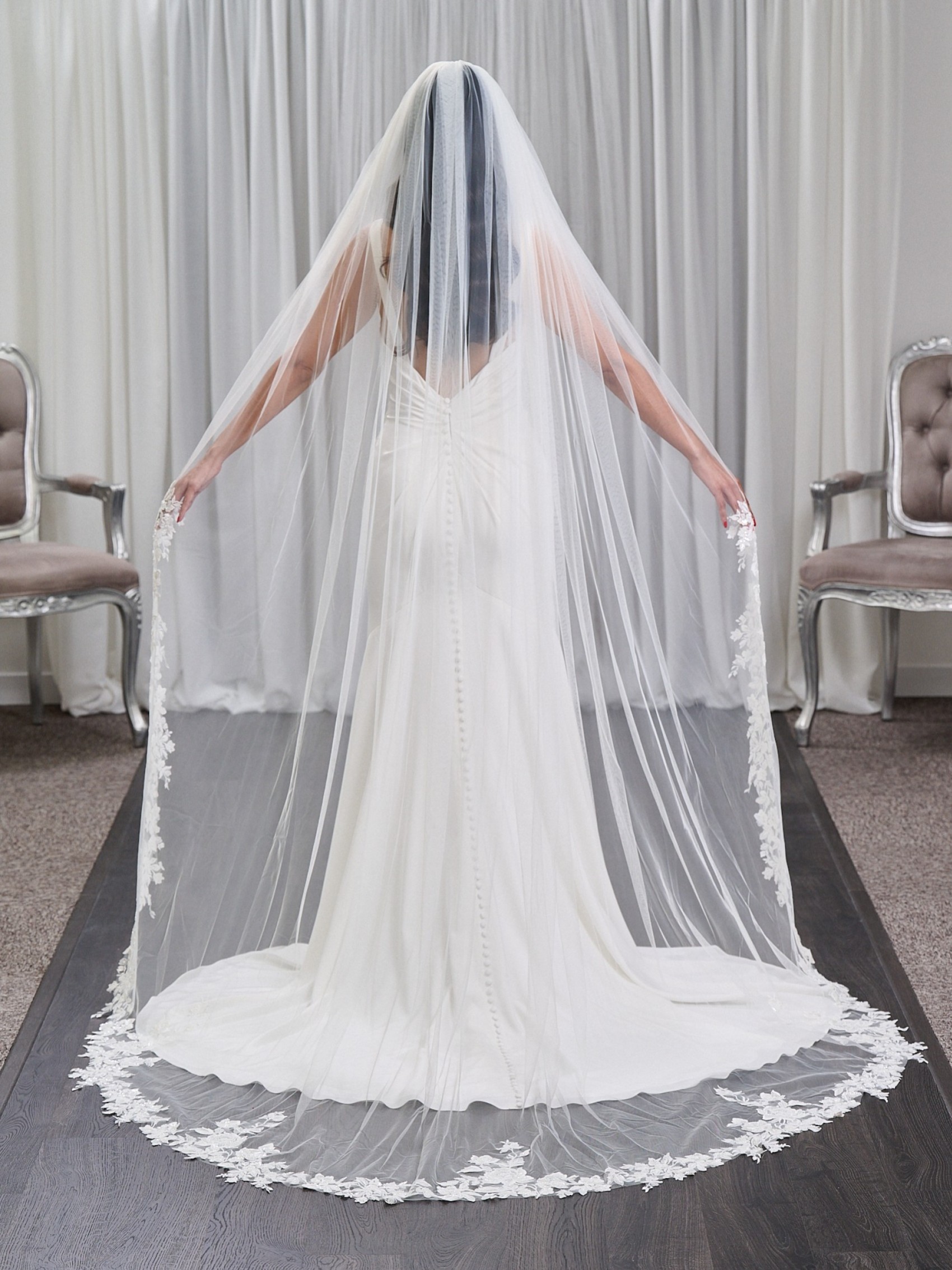 Cotswold Velo lungo a un piano in tulle italiano con perline e pizzo floreale | LFV040