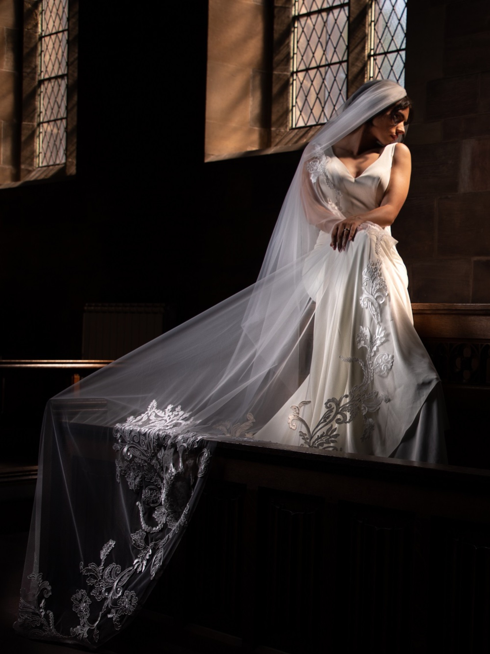 Perfect Bridal Velo da cattedrale in pizzo ornato avorio a un solo livello | PBV9036